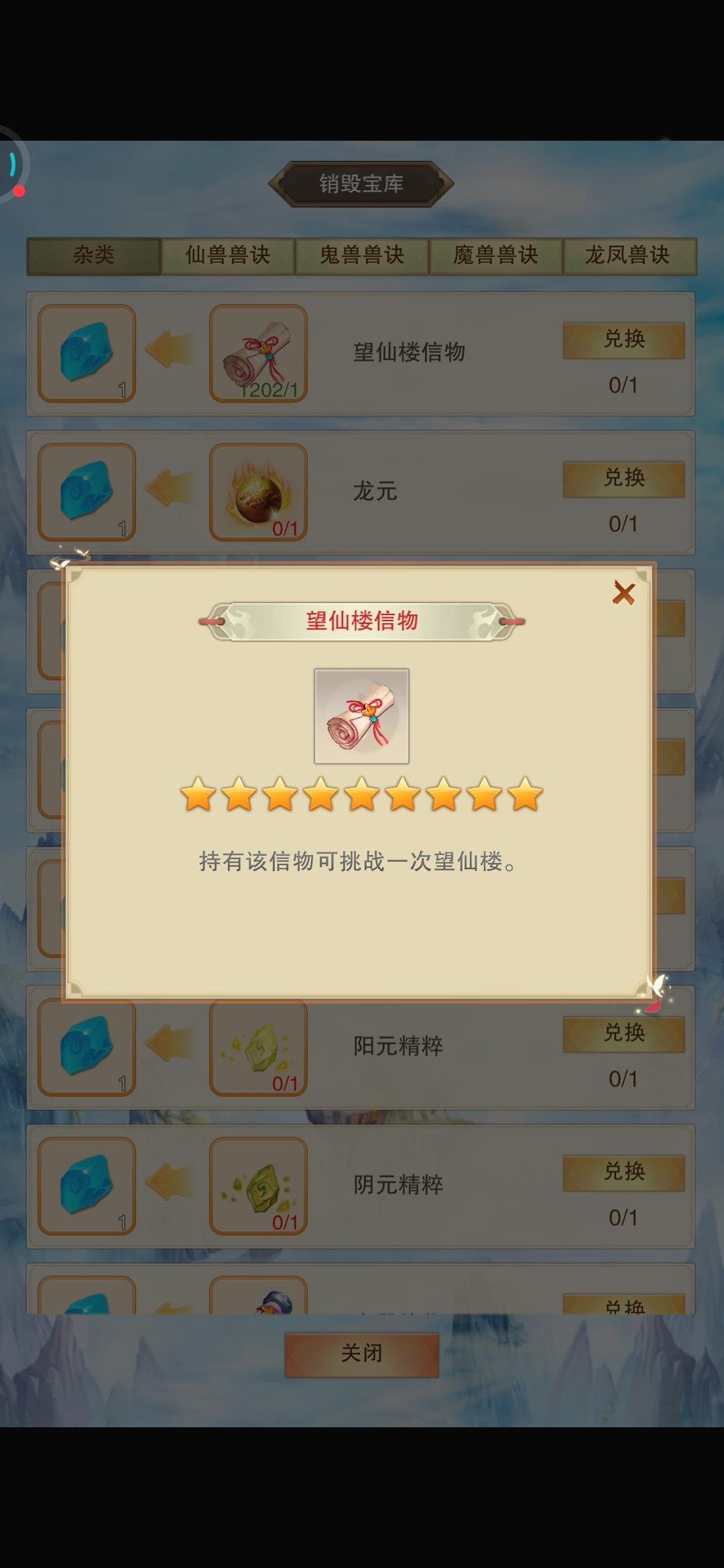 官方我的望仙楼信物太多了一个个销毁太慢了能不能让多销毁几次,还有就是荡魂山信物没地方销毁