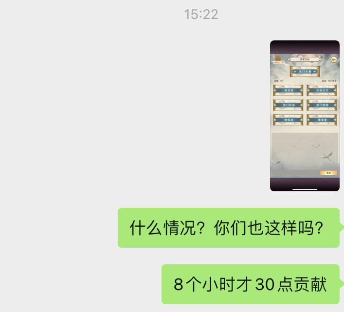福地洞天自建门派里任务大厅做任务离线不加贡献。图里是聊天记录时间间隔8小时只长了30点贡献