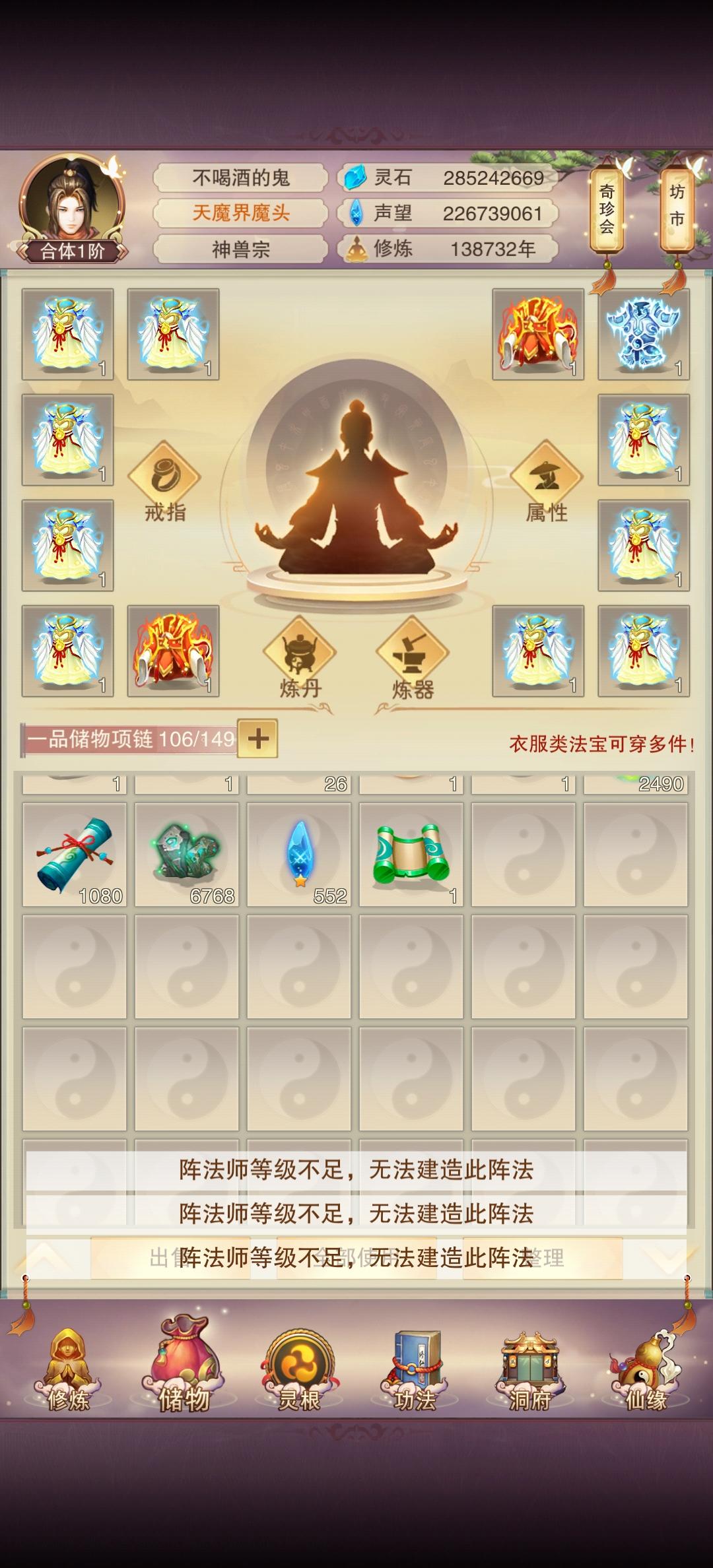 问题来了我该怎么升阵法等级背包又又又减一了。本来就一堆吃不了扔不掉的东西