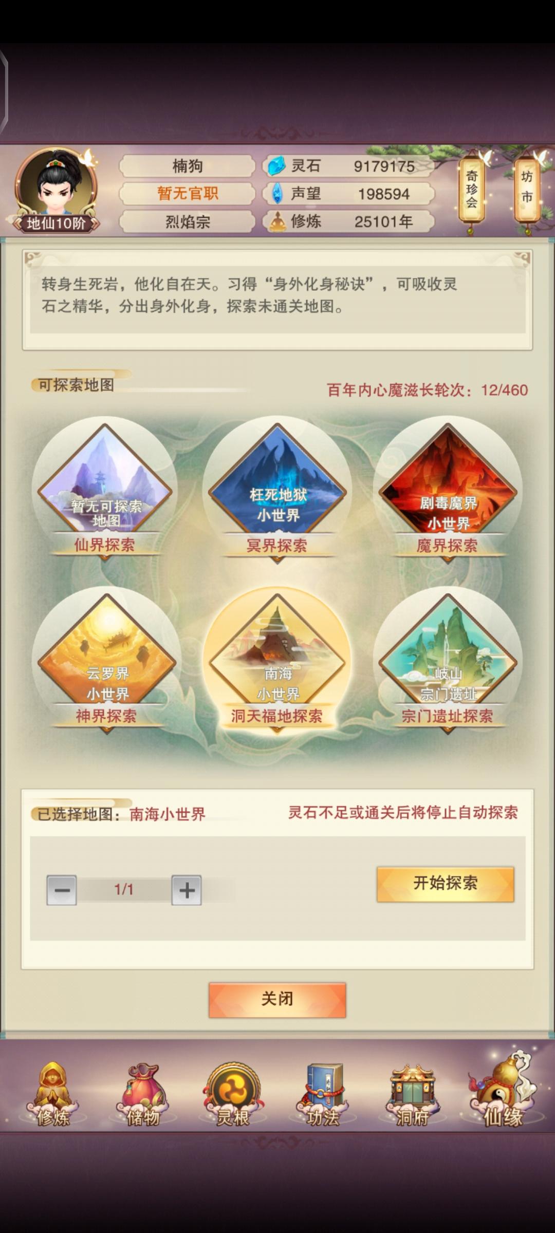 有没有大佬 求教一下 我在洞天福地第三个岐山这里总是显示尚未通关南海小世界 但是我南海的上古宗门探索已经完成了啊