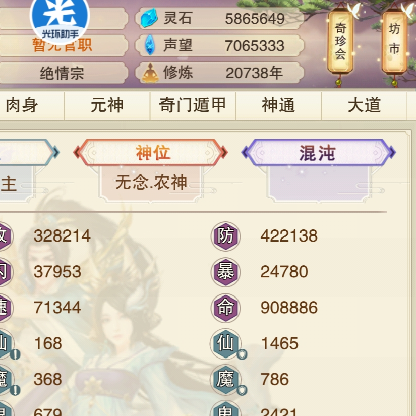 不玩了,被门派劝退了,今天大罗金仙留了1800万声望刷魔神,结果没出,我现在技能点才64个,我就呵呵了,破游戏,破限制,你们爱玩继续玩,花了两万多喂狗了