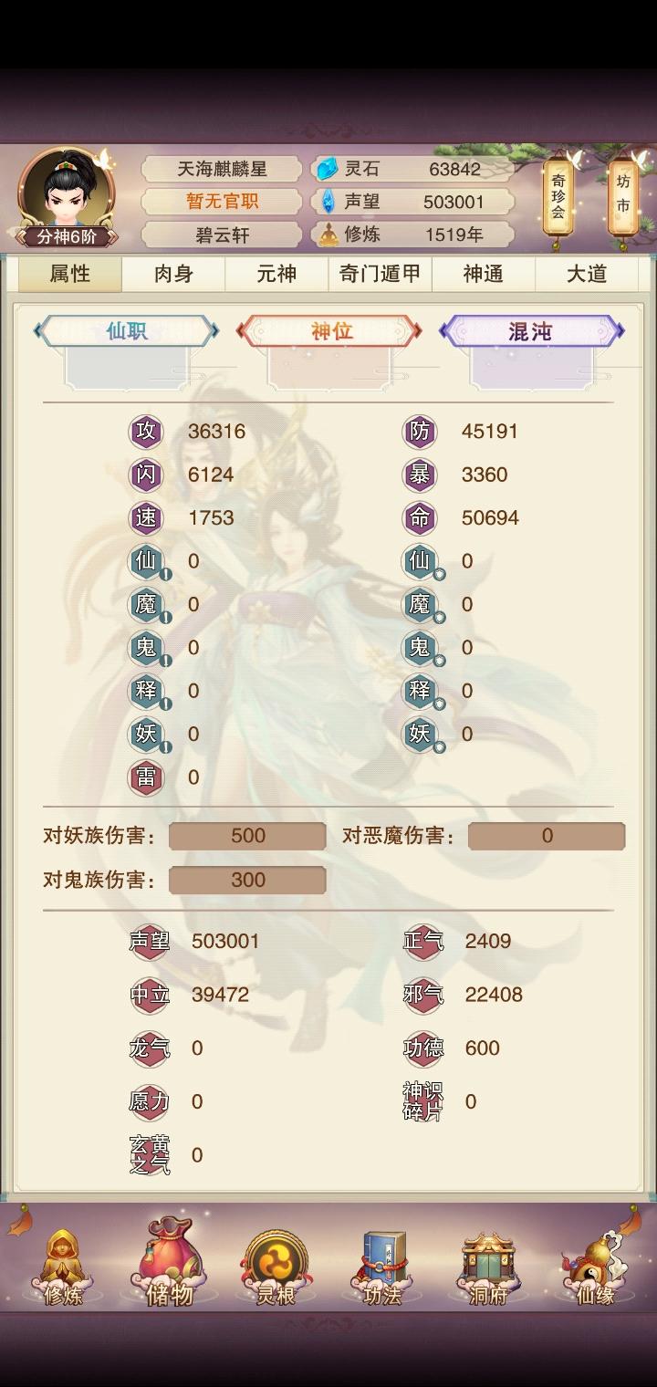 各位大佬帮我看看我这个成仙的属性如何,有没有走偏