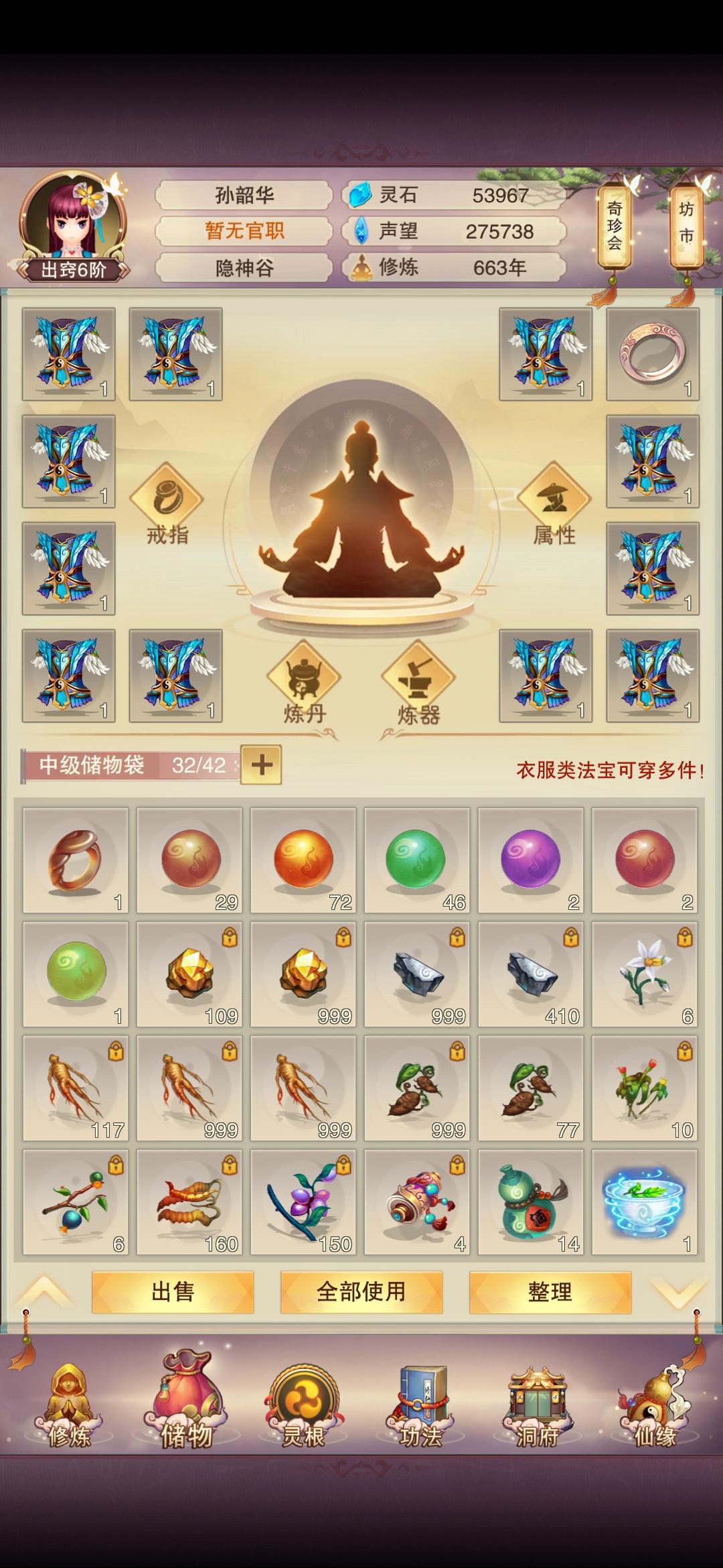 仙君10阶了,也不知道这个道具后面用得着不?太占背包了,现在有10组