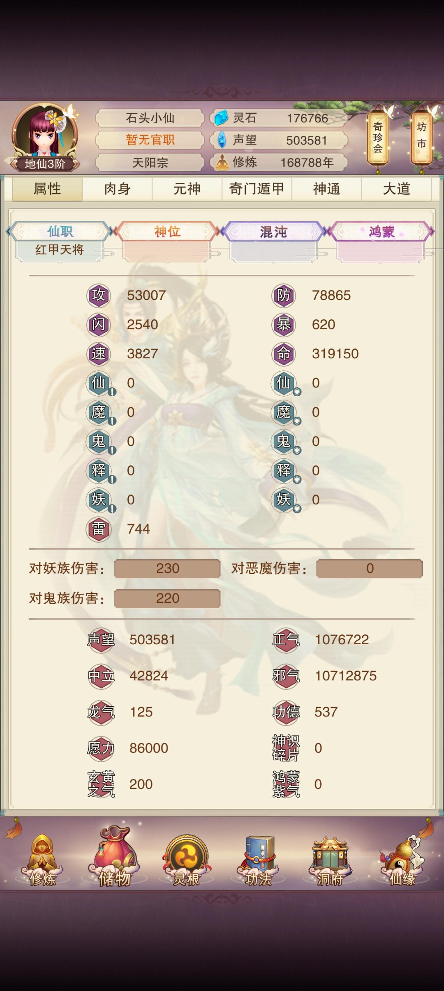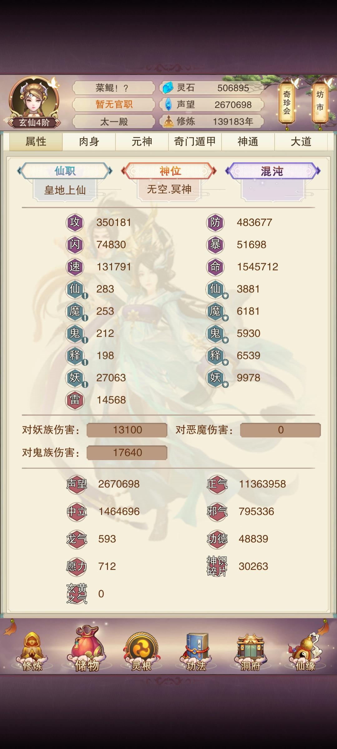 目前3.5万年,一星神通防9级,功7-8级。还留20多六丁神火。 已经当了4个月一星大帝了,等前面让帝君最少2个月,我也只是有竞争机会 现在我是继续等帝君,还是去二星天当大帝? 纠结
