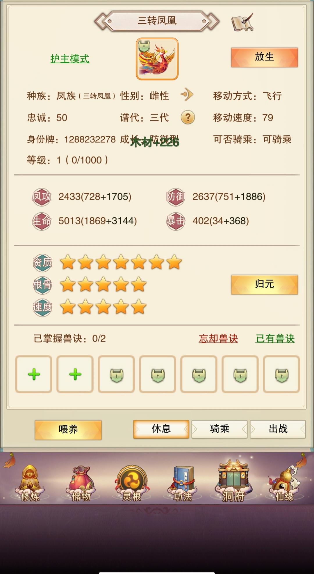 大佬们,这两个宠物改变性别能繁殖吗?资质会不会差太多,妖丹不太够,求教