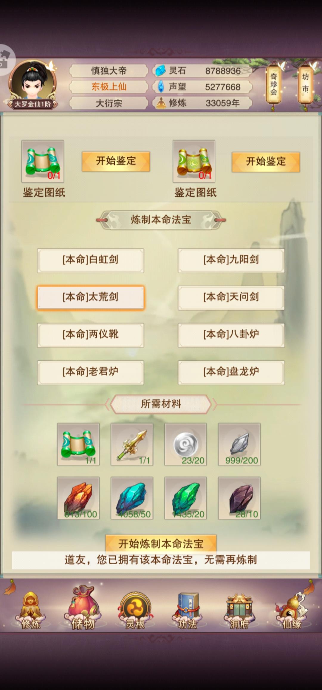 太上宝库换玩了,本命法宝也有了(做不了新的本命法宝),多出来的图纸怎么办,卖也卖不掉。(太荒剑)