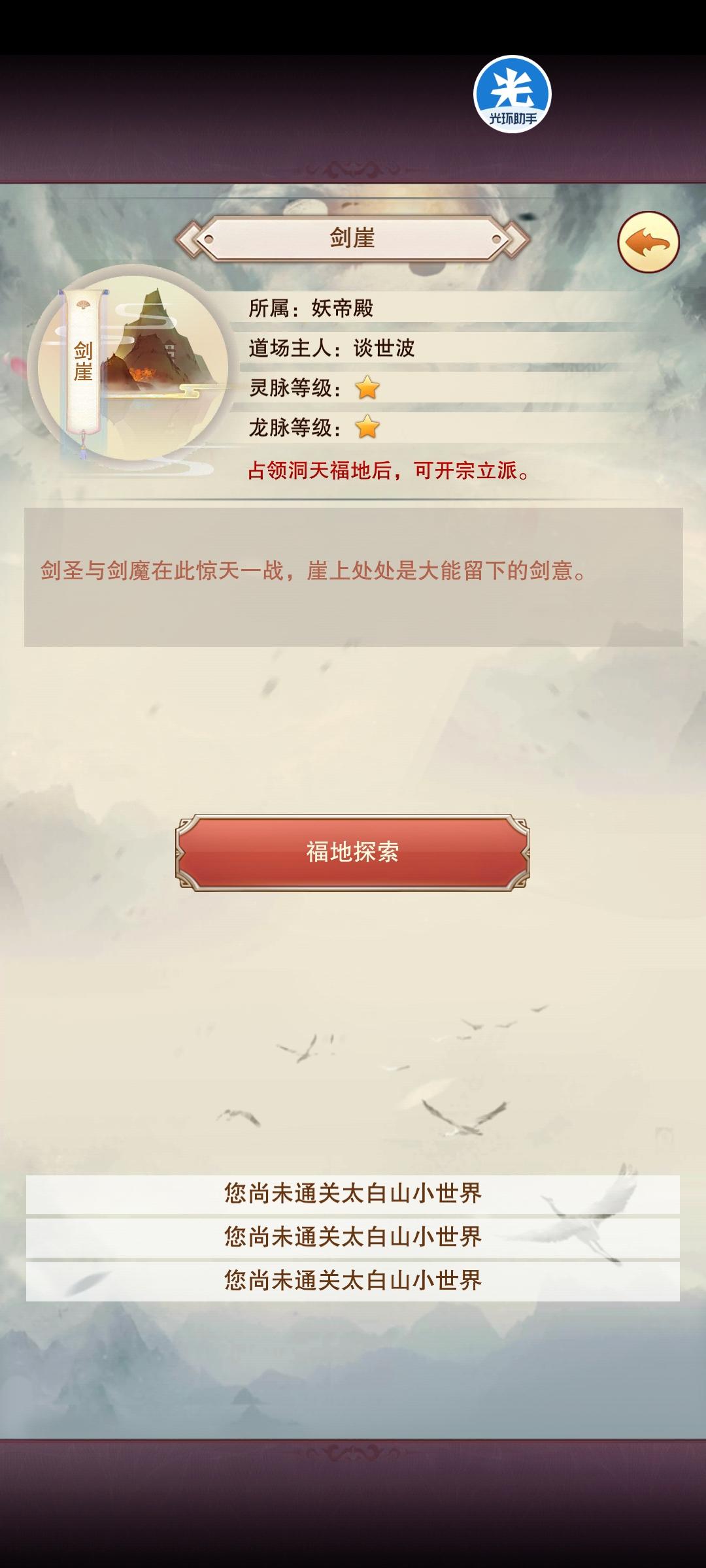 岐山一直进不去只有探索,提示太白山小世界没过。我太白山探索过了宗门boss都过了 一直开不开剑衙为什么我太白山进入后地图上更本没有宗门遗址,出生点在左下第一个通关点在右上第一个,和论坛上的地图不一样这是为啥?图三是太白山的