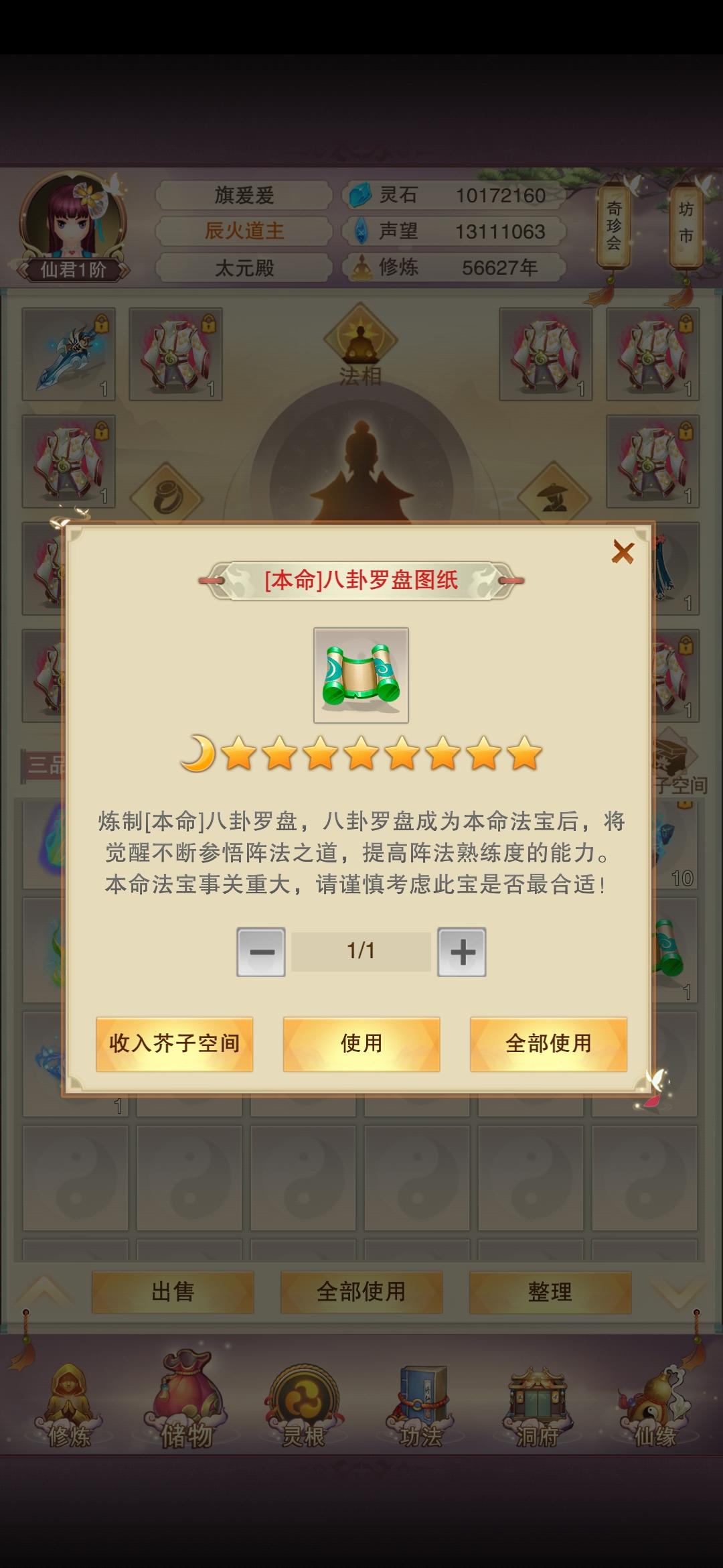 提问为啥从太上宝库换来的本命图纸不能用,在背包里点击使用,什么也不提示