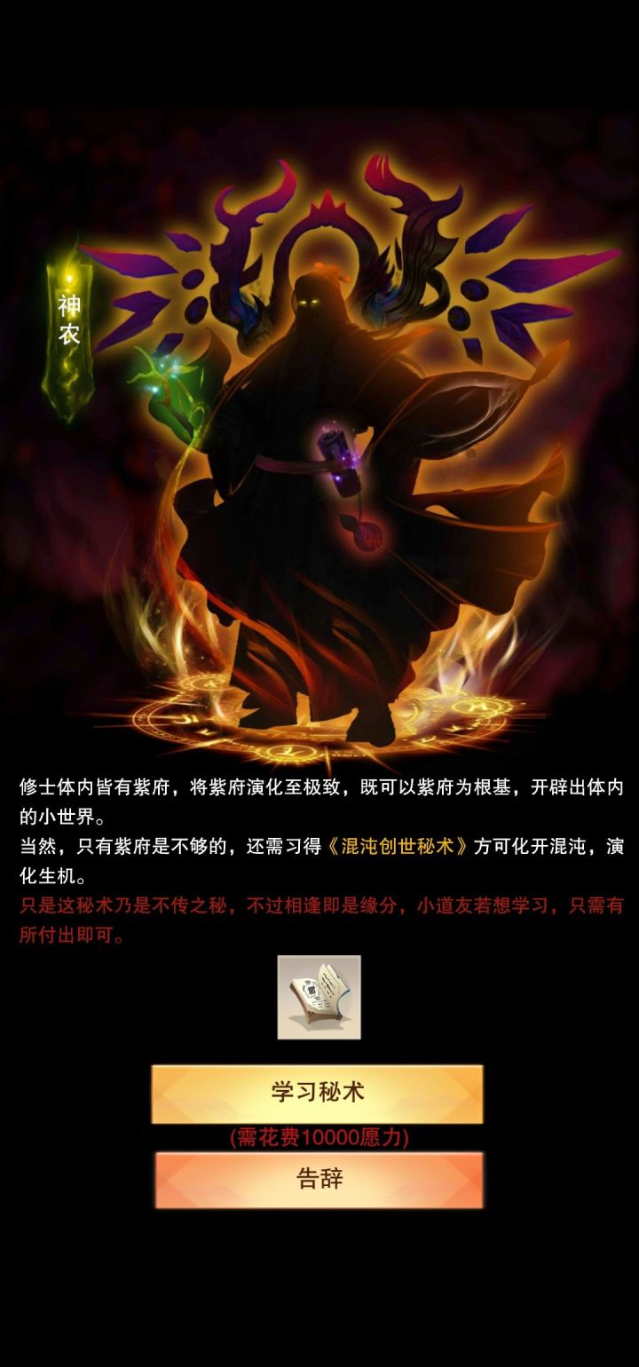 有求必应图片来源:愿力珠图1来源:仙侠营地一、开辟前小世界相当于愿力树,是愿力的主要来源之一。开辟条件:紫府九级+掌握混沌创世秘术+先天五气各3000混沌创世秘术在哪里购买?天外天→神农谷→神农谷神树大椿里面有个神农,找他花1万愿力学习。注意,如果你在天外天别的地方(比如玄冥宫等)学神通需要先退出来。再等24小时,小世界就好啦。二、凡人国度国家上限是9个,每个国家最高9星。