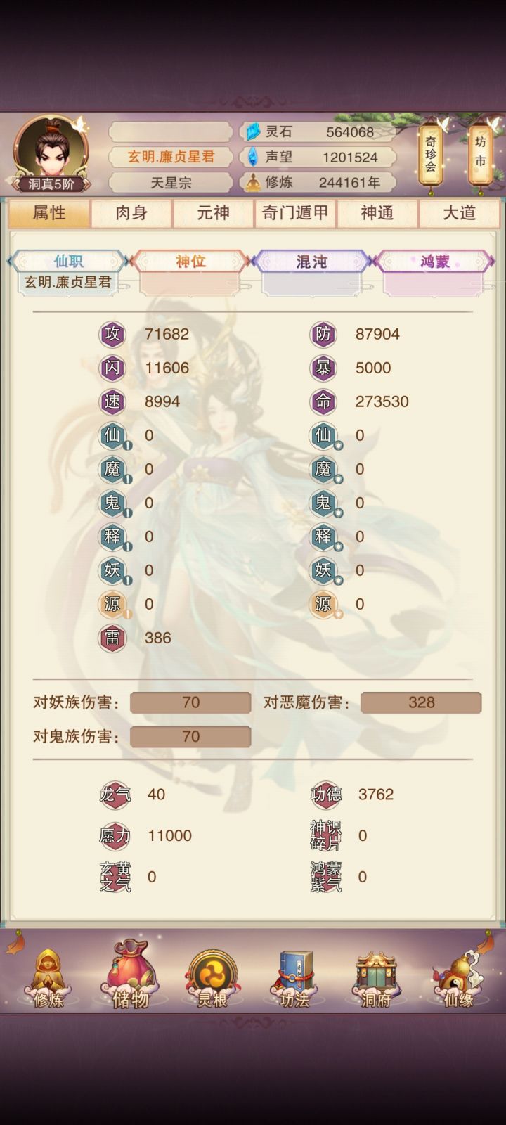 第一把本命法宝,基本大部分人选择的是青魔。青魔由于它的高触发几率(固定10%)和不错的吸血能力,在功德任务、功德车、过图、打星君方面都有非常良好的表现。特别是11功德任务,没有青魔的话,通过的时间节点至少会推迟一万年以上。但是青魔在后期星君PVP的作用是明显不如一些更加“暴力”的本命法宝的。因此,在真诀党过了11功德(顶层过了12功德,万氪以上过了13功德)之后,或许大家需要一把更加强力的PVP