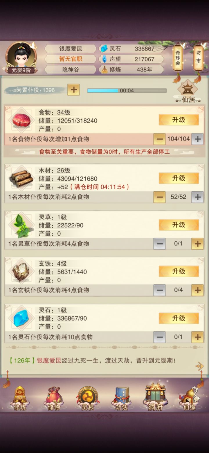洞府:草铁卡上限就简单的说就是草和铁达到上限,然后再收取道童,从而达到卡出上限还不懂得问别人过图:刷图:以上都只是仅供参考修仙有点寂寞也可提问一些问题,我尽量回答