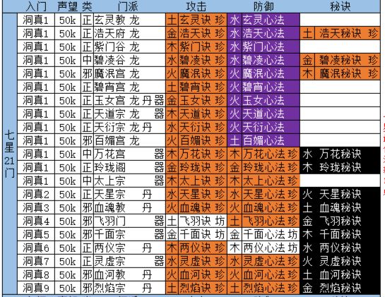 下期弹幕:往期回顾:玩法解锁:七星门派,三星福地,黑水湖,戒指法袋门派:1、刚到洞真的时候别急着刷门派随缘刷一个秘籍门派2、动真后昆仑寻龙给七星信物建议用信物将天道宗 天洐宗百媚宗 的攻防拿掉(七星属性最高)3、然后洞真挑选三个炼丹门派我都建议升级真传领悟一下丹方顺便攒一下声望4、学一本七星攻防就忘记一本六星攻击直到忘记全部六星攻击5、技巧:三个信物秘籍门派,留着门派突然卡