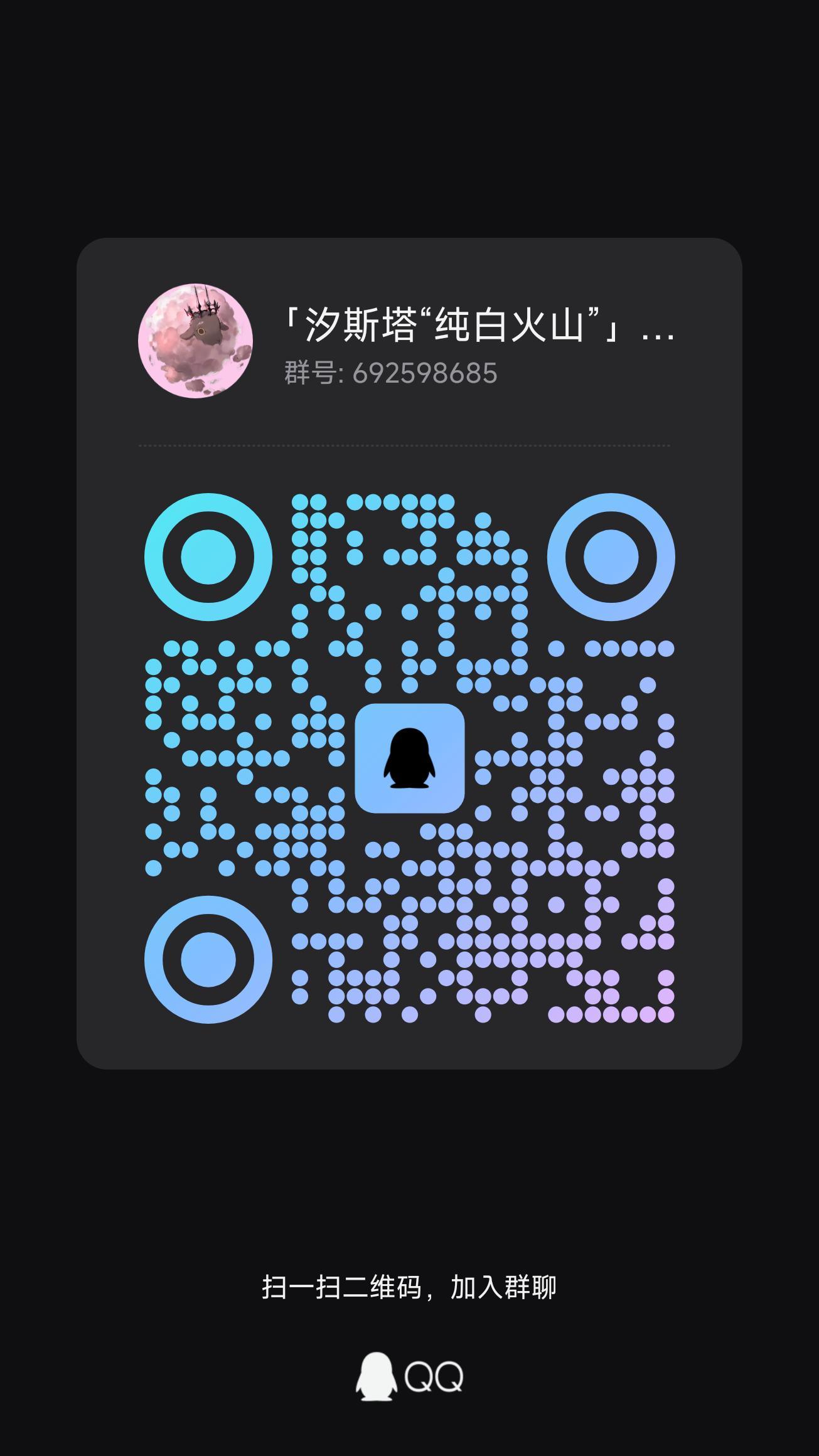 火山的烟云散去,阳光温蔼依旧然「汐斯塔“纯白火山”」欢迎感兴趣的小伙伴加入,群号:692598685请注意:本群不会讨论非鹰角网络旗下的其他游戏,入群QQ等级需要大于40级,否则不会通过,请不要用小号加群谢谢为防止炸群,进群后请在10分钟内提供森空岛个人界面的截图,以免被踢,谢谢