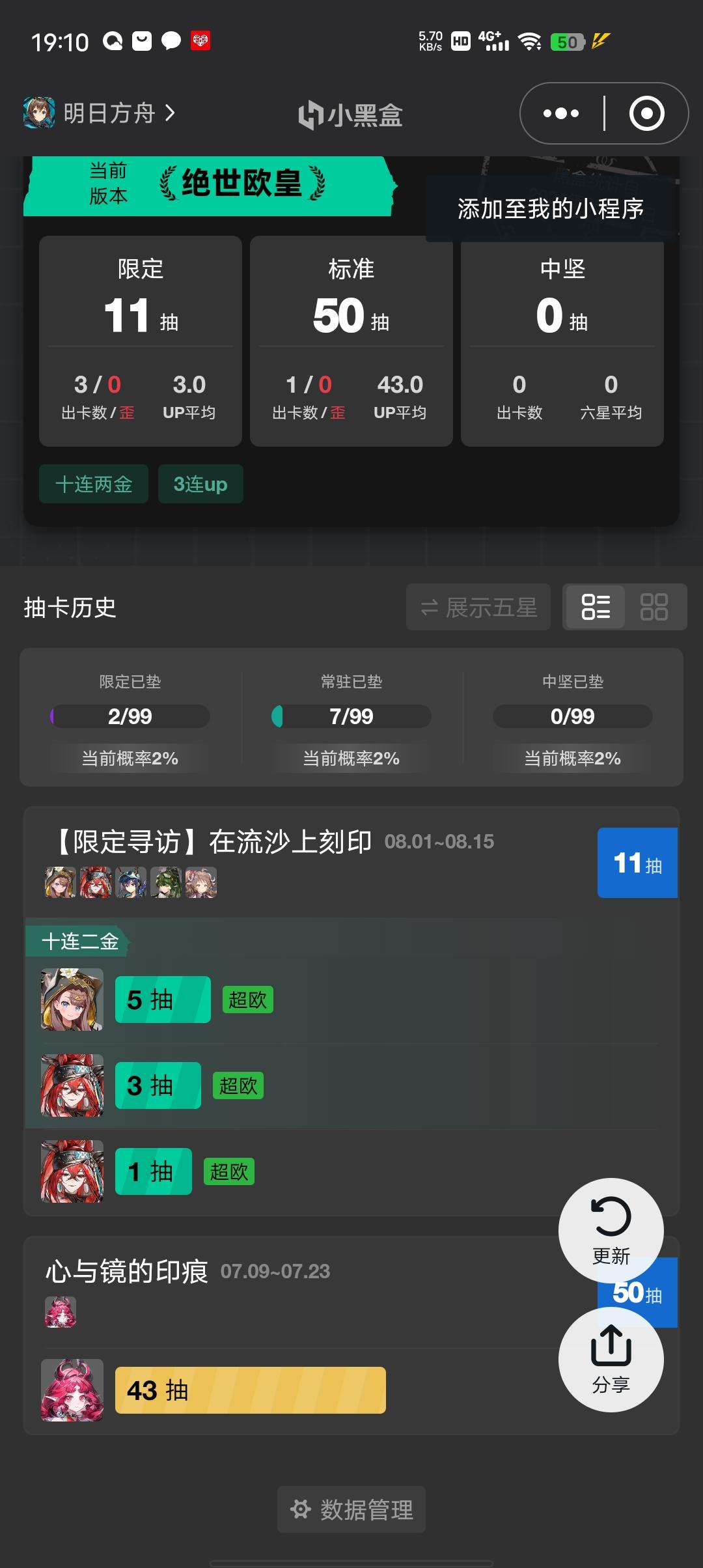 111抽,活动结束,陪跑6星就不放了