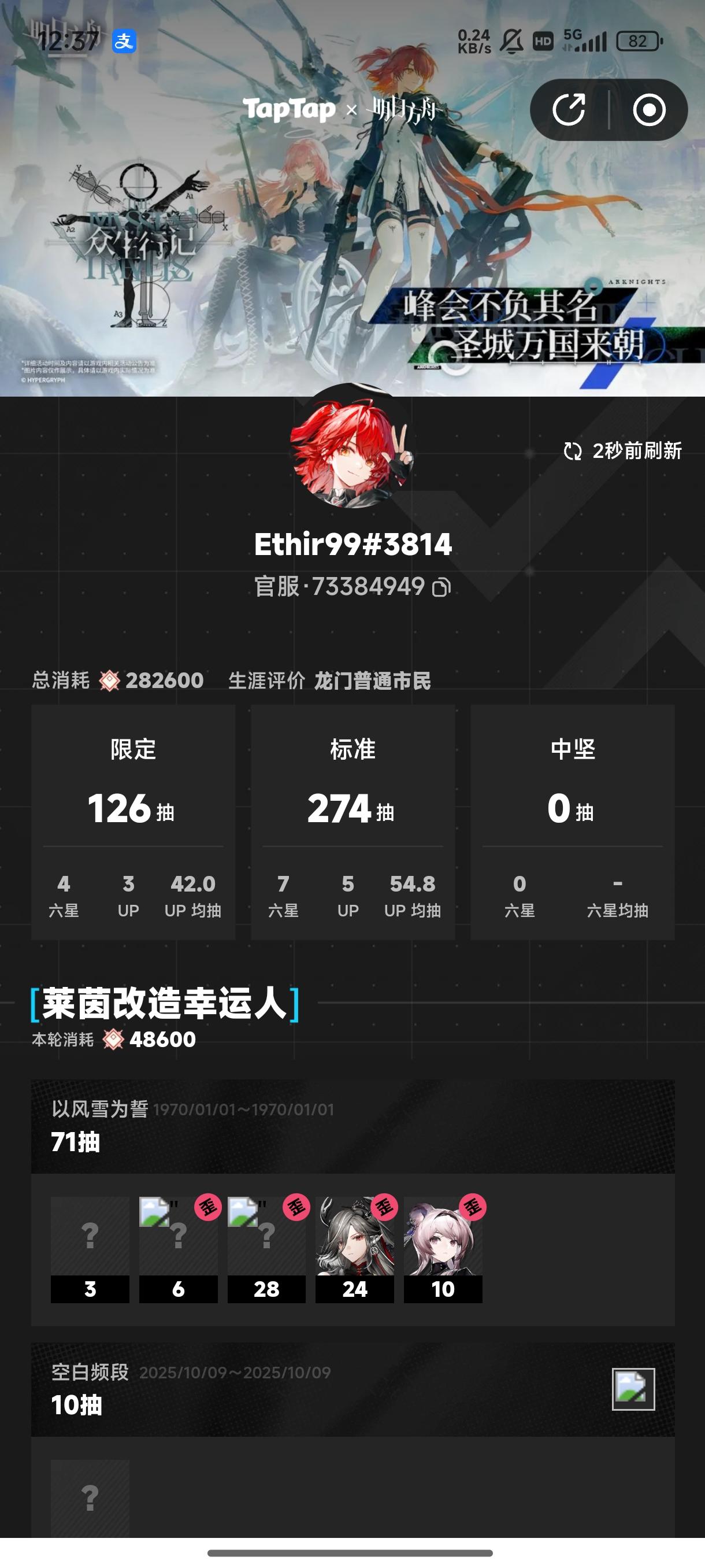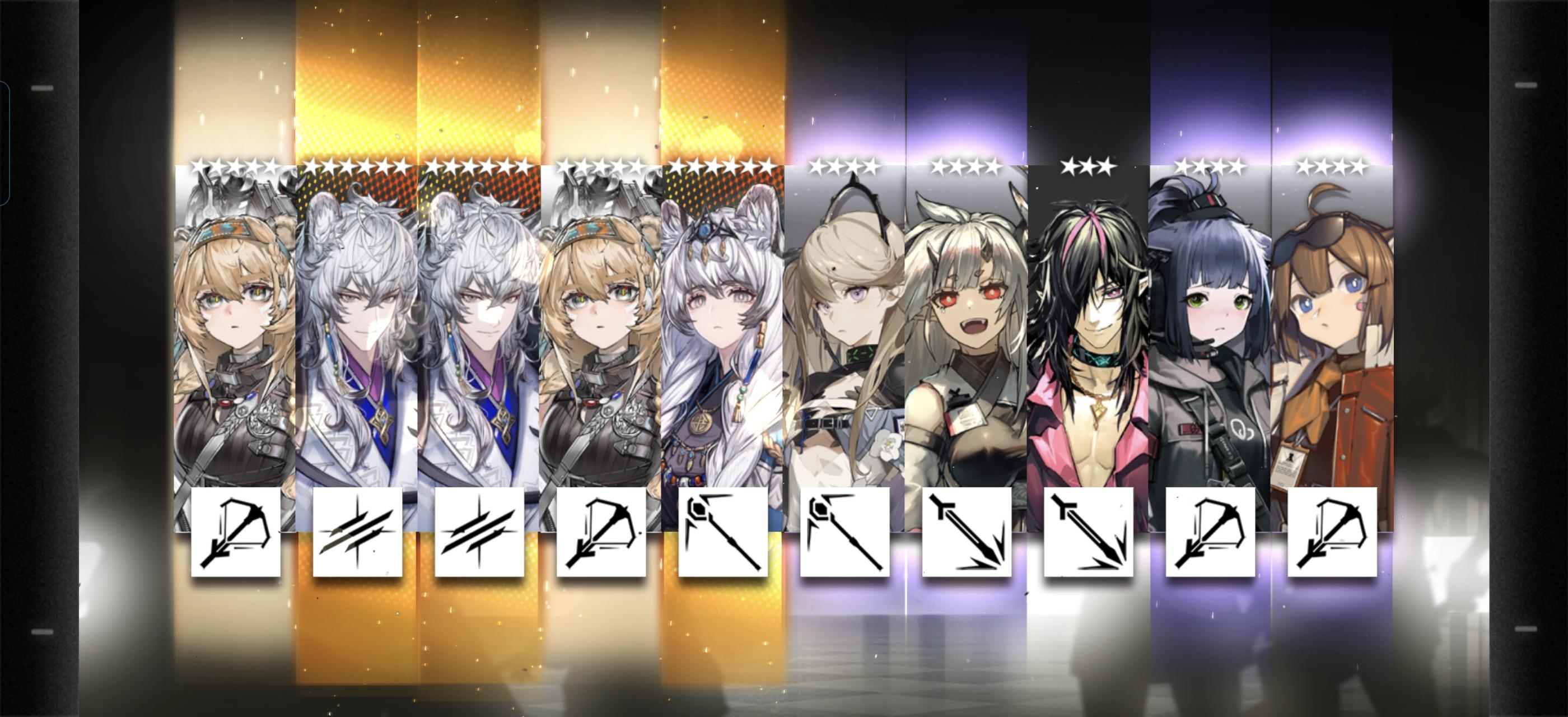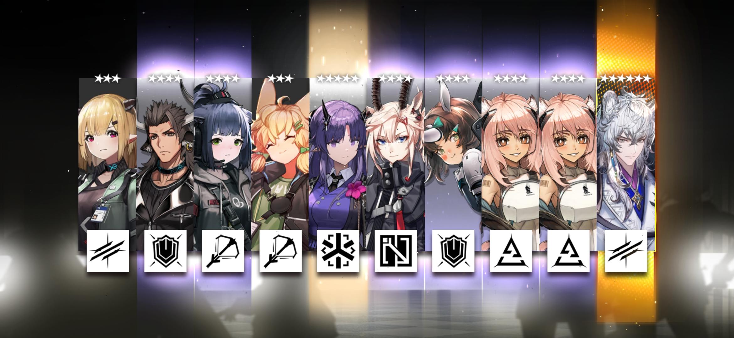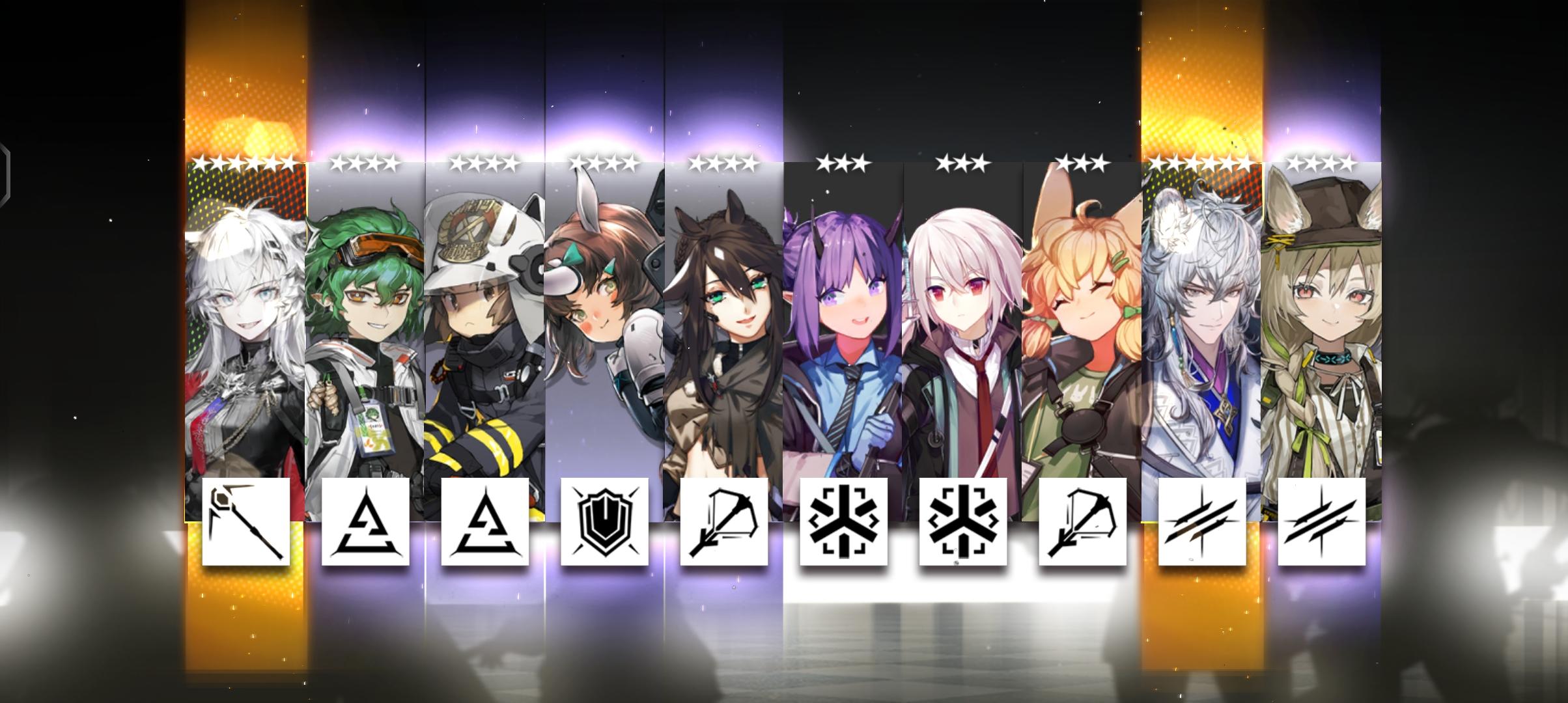 今今天出了一个高资,于是打算把囤的500多张公招券用掉,换点黄票换10连的,结果没想到又出了两个,又出了7个5星#明日方舟