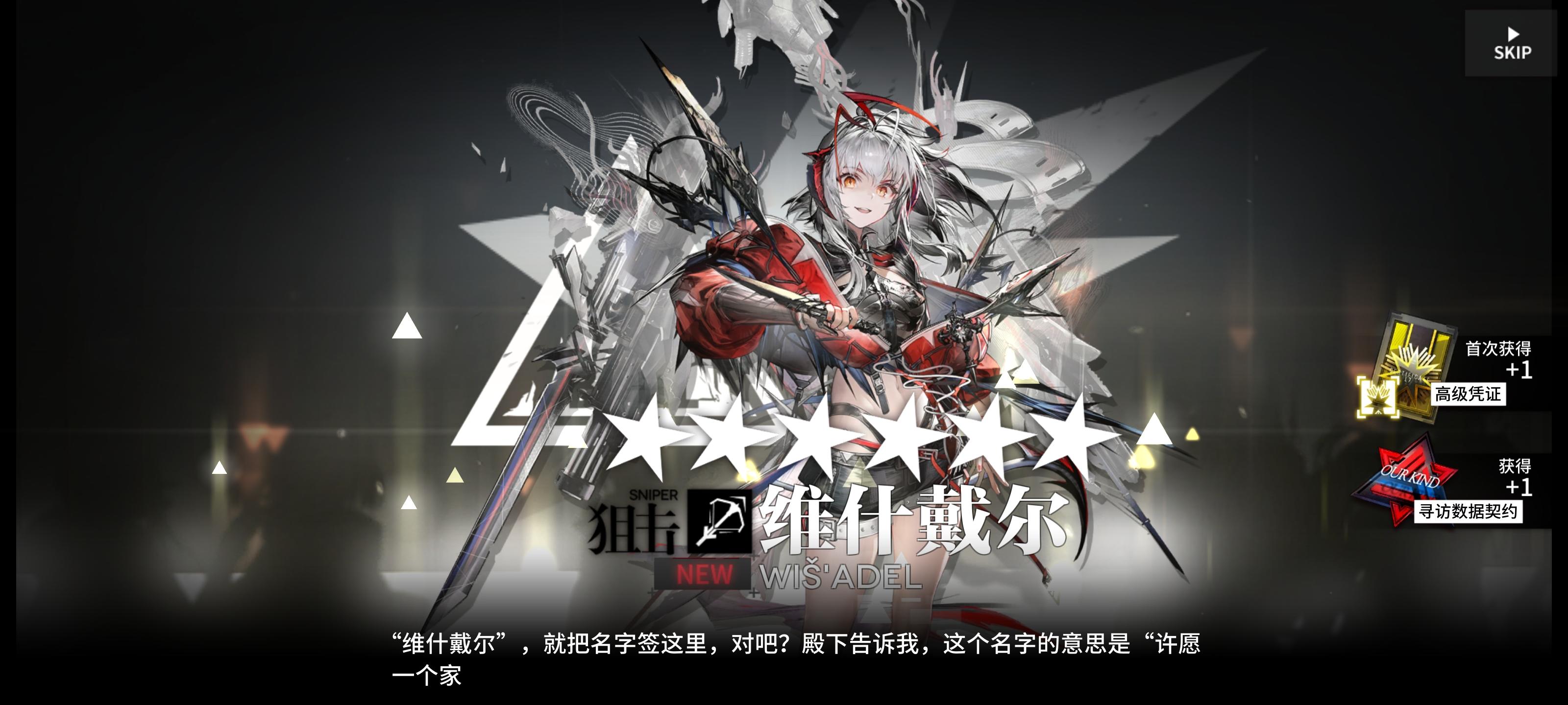 好不容易又攒了个十连,结果抽出来个罗格斯,想着单抽能不能抽出来六星,结果抽出来一个罗格斯,再抽一次就抽到了维什戴尔,我这辈子都没这么欧过,这对平民党来说是多大的奇迹
