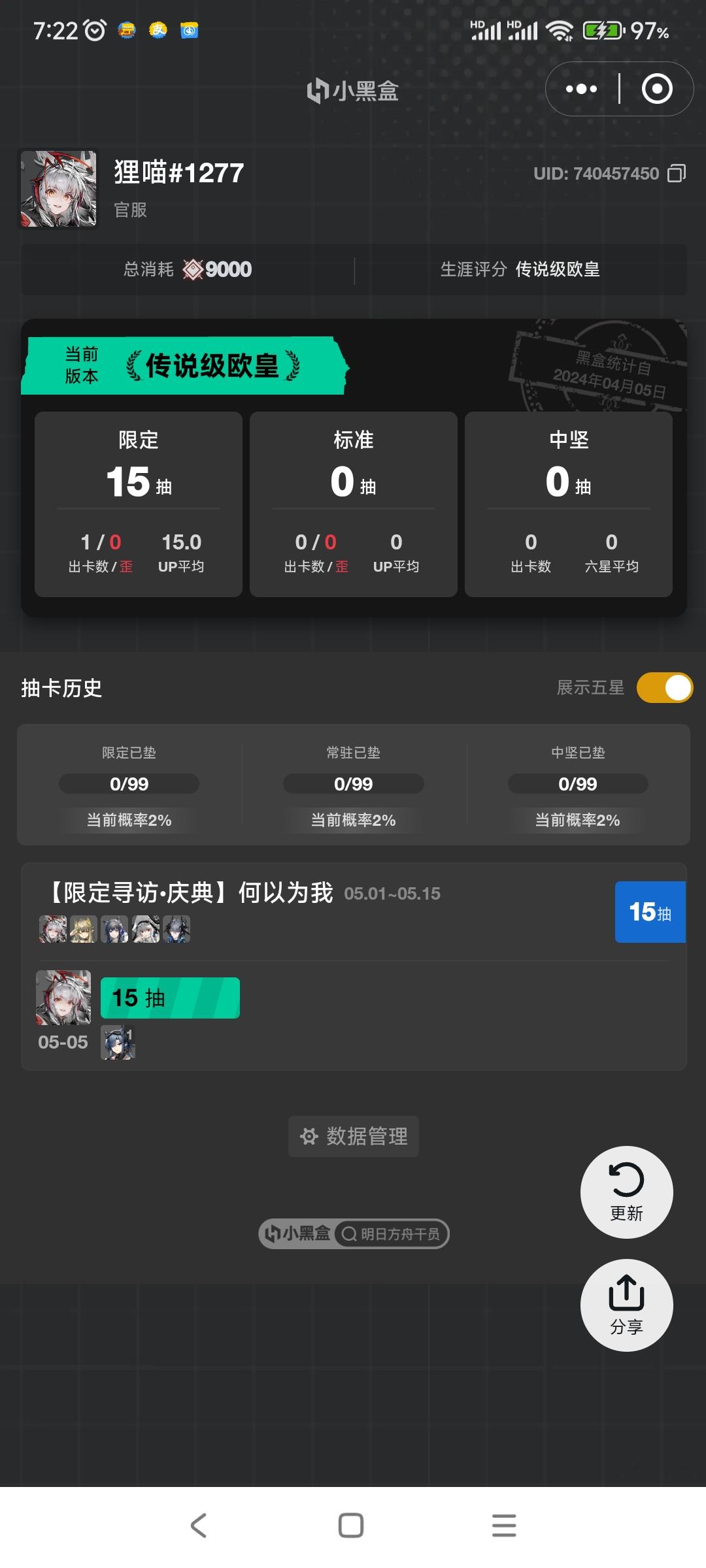 本想单抽6次把抽数调到286然后每天白嫖一抽最后300井缪缪,结果出了3只异W,给我惊呆了,加上300抽送的益达就满潜了玩舟两年多抽卡最欧的一次,没有之一了顺便加一波好友,马上就有精二,90级,满潜,3级模组的益达挂主页等着各位体验