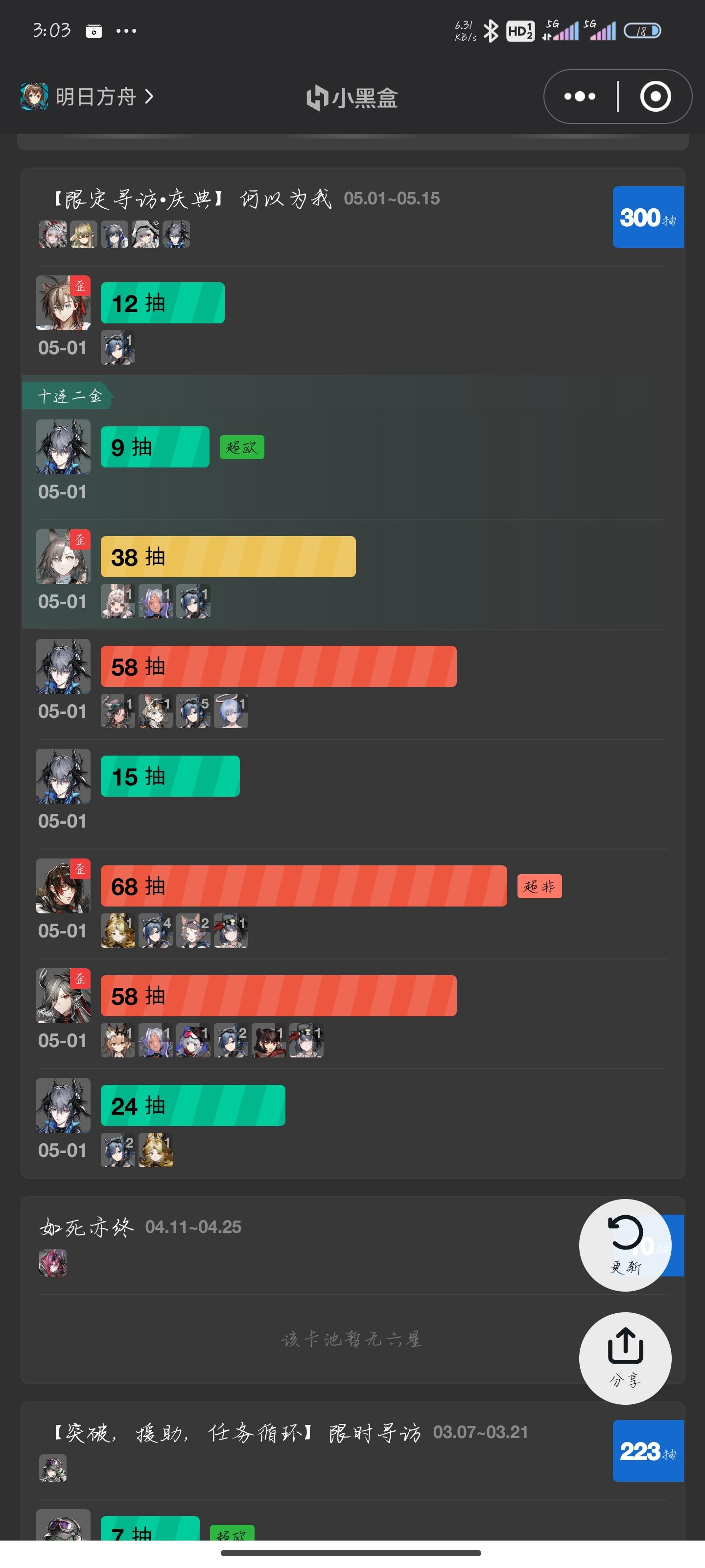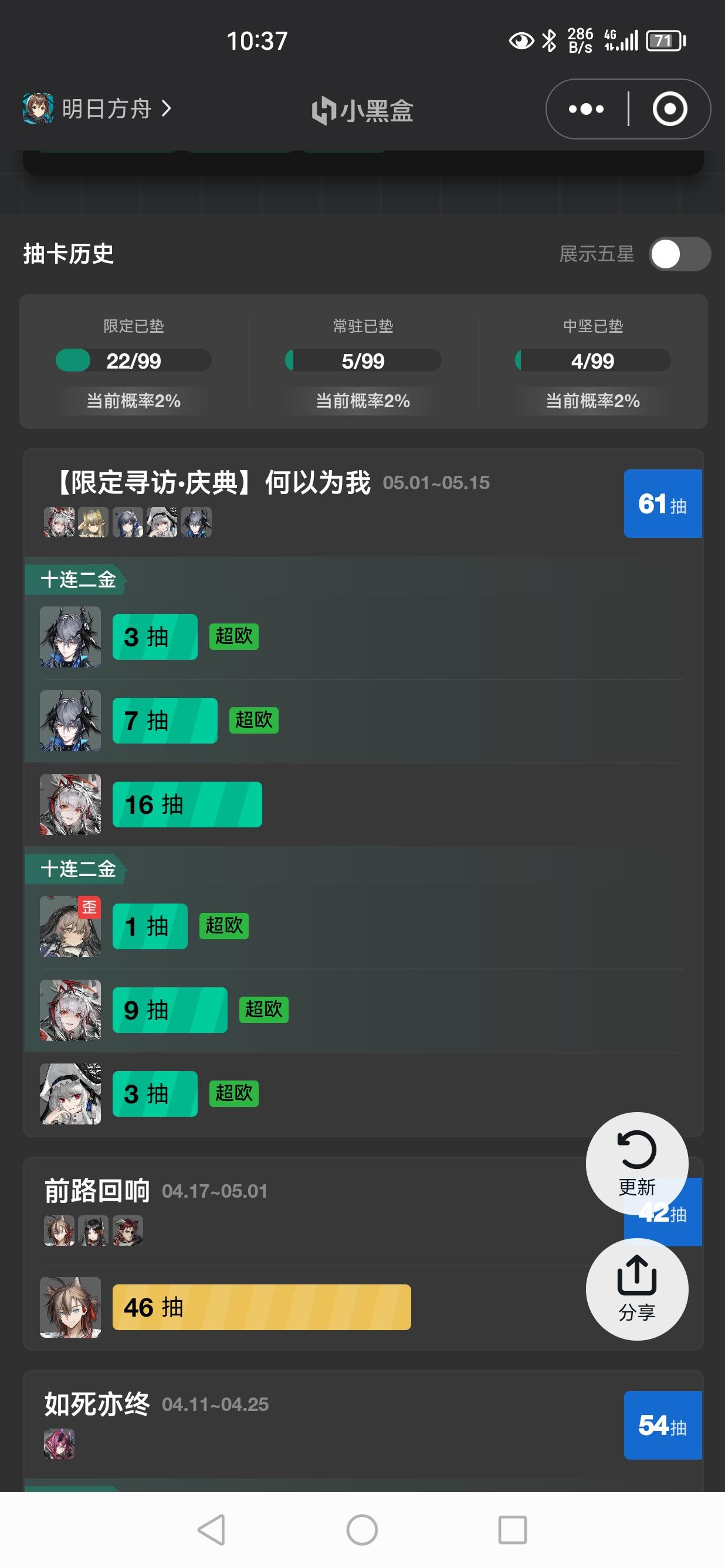 六星暂且不谈,吃个保底没什么,但五星也这么少也太折磨了