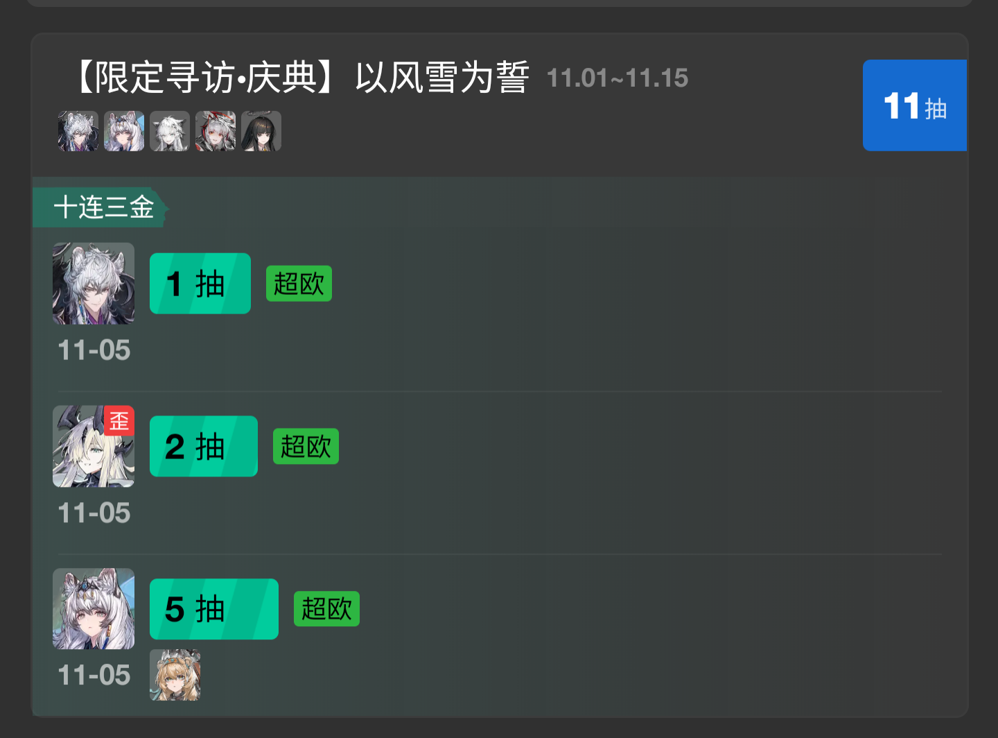 为数不多、想要两个都要抽到的时候可惜上次夏活出了异格星熊,但是遥更强,我没抽,奶羊也没有