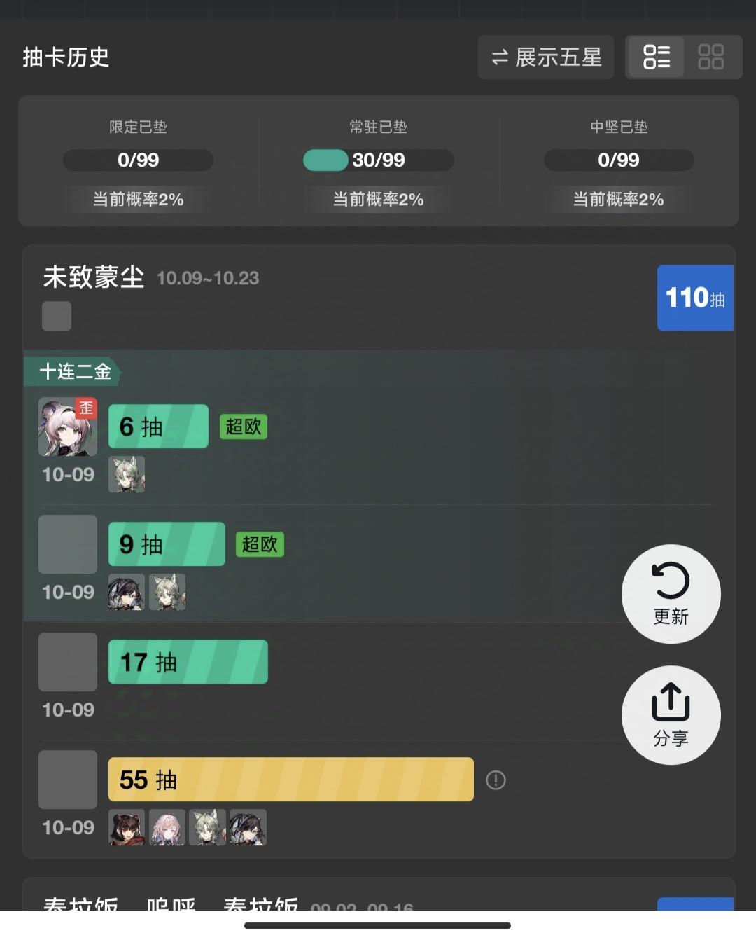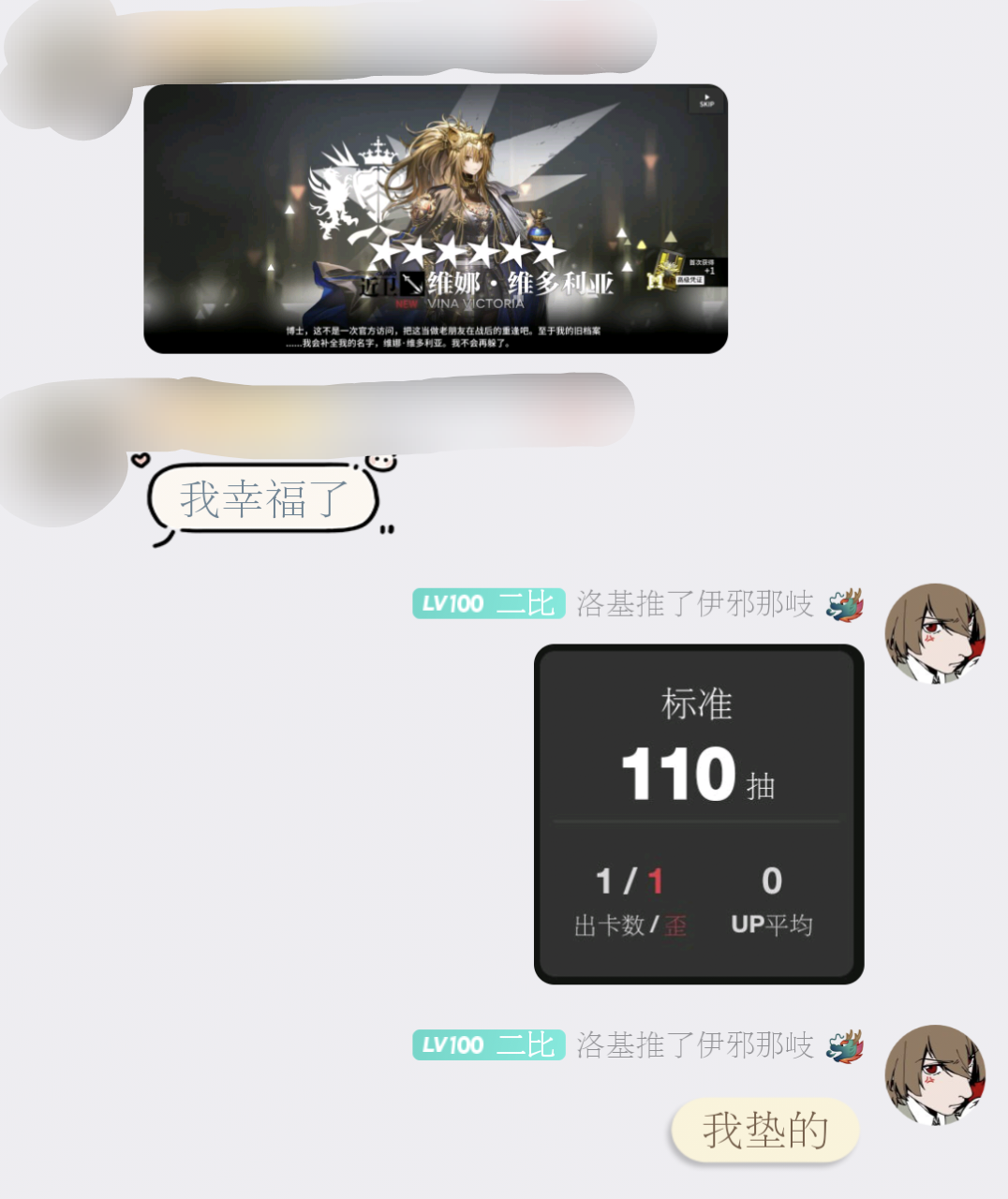 110抽3维娜,希望下次新角色池子也能不歪吧