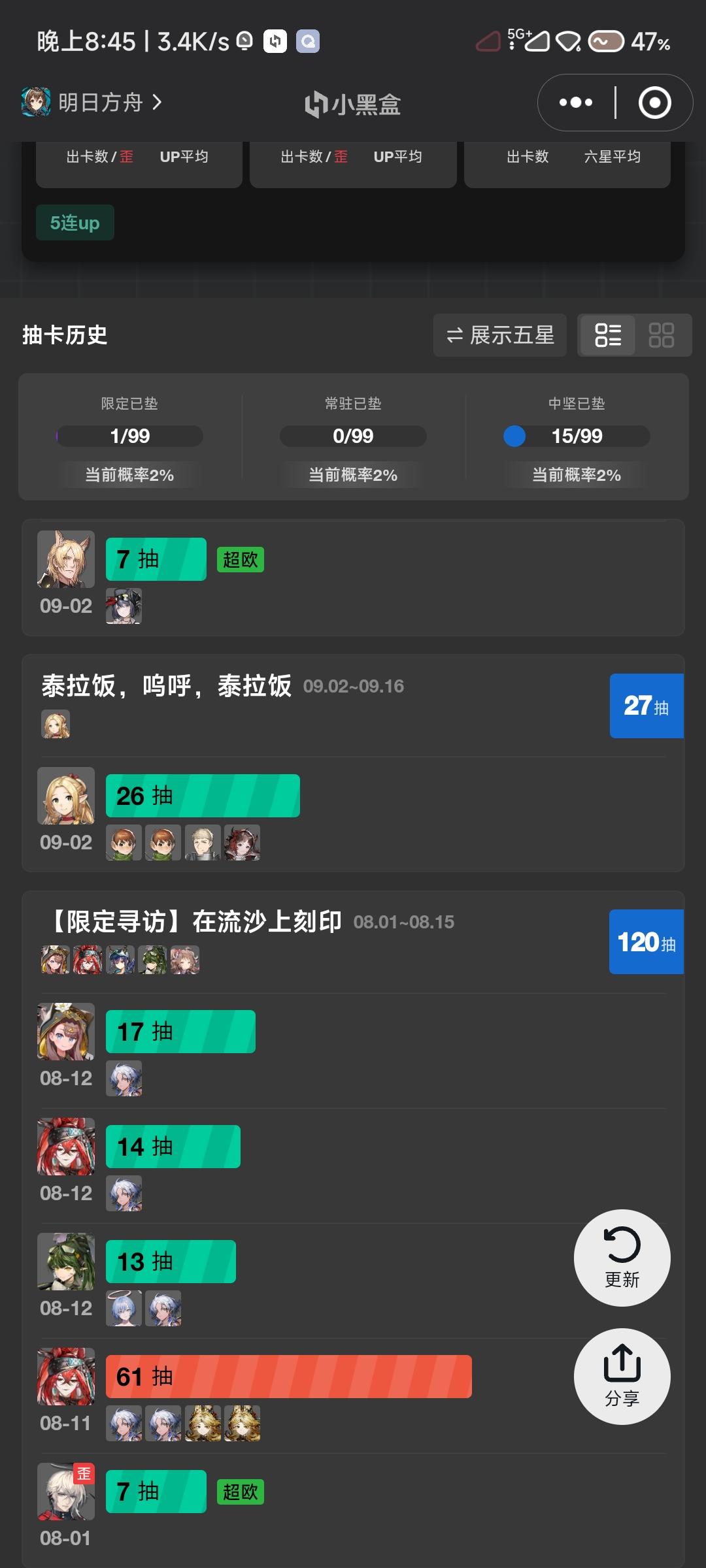爱了爱了,这么强吗,50抽,0个6星!