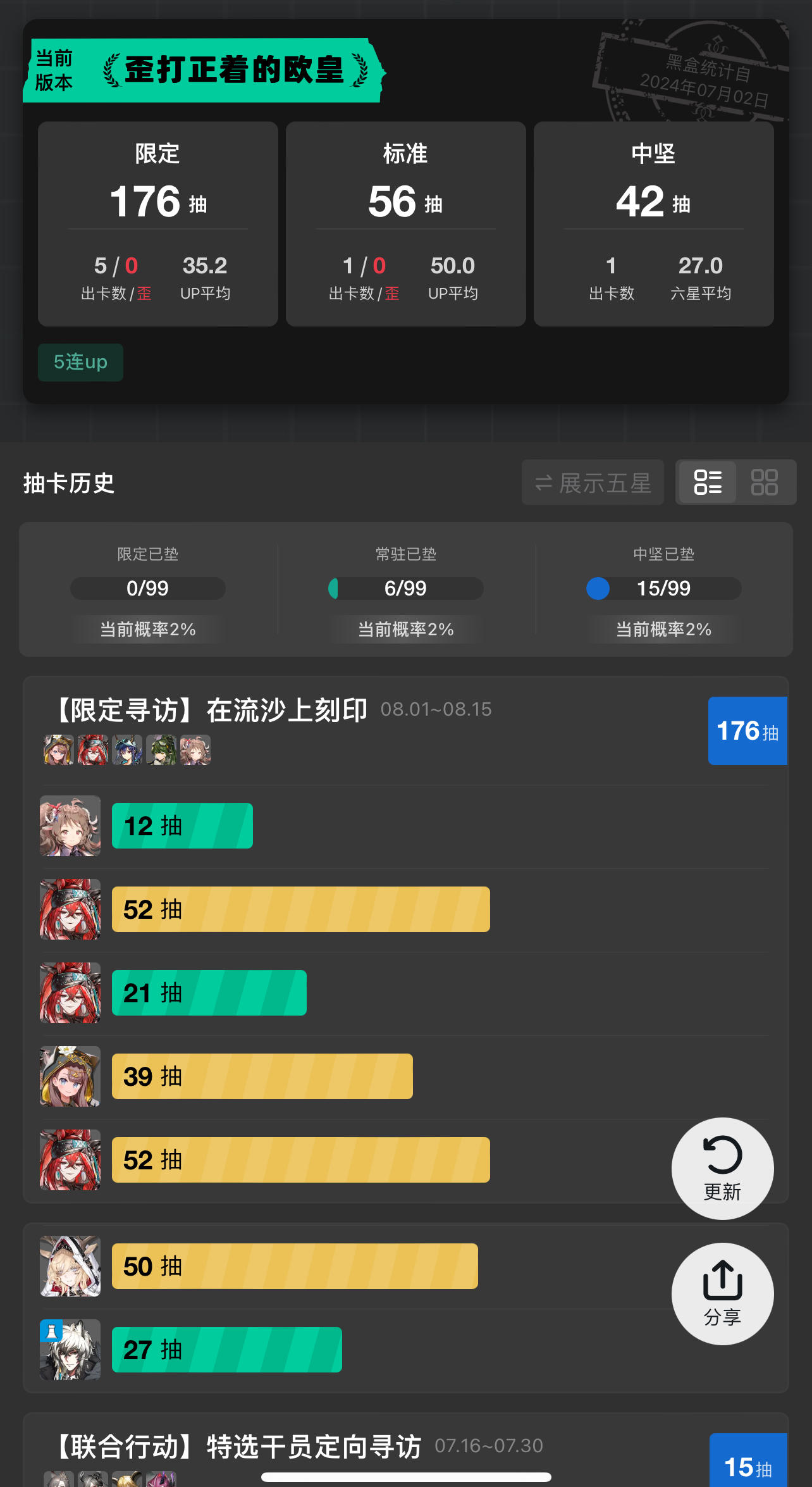 125抽两六星都歪了,什么时候来一个保底机制啊