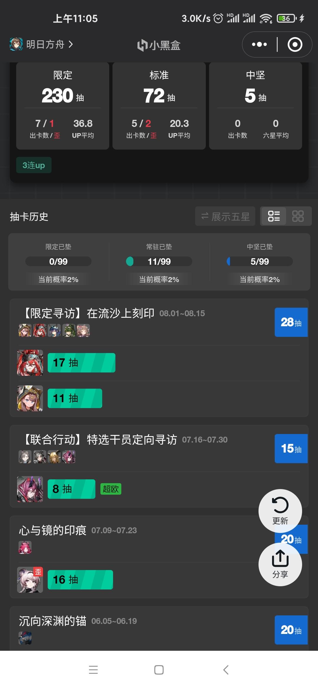 大号120抽3六星,小号十连出限定,哎