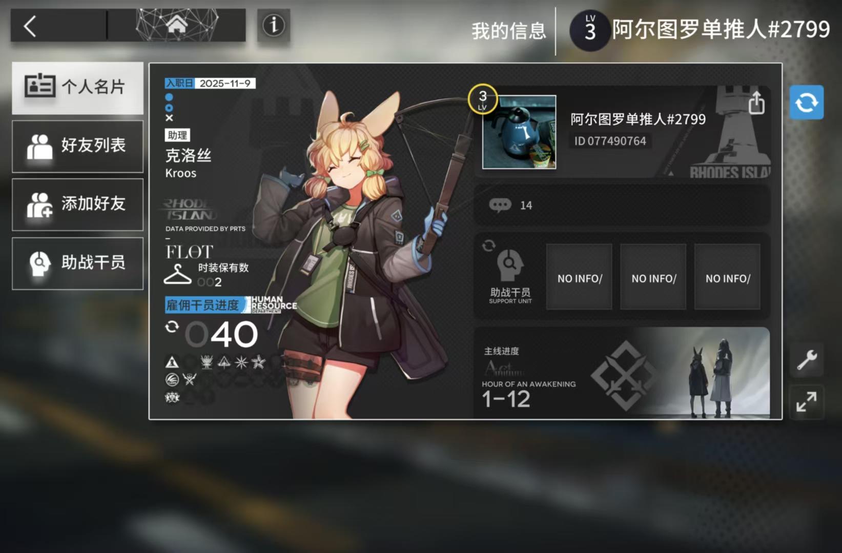 我加了好多但是同意的就两个来点好友吧,或者留下ID我加也可以#明日方舟