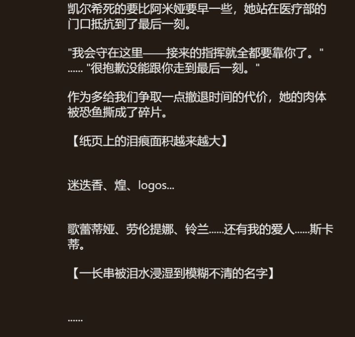 博士与浊心斯卡蒂的终末之旅。——————————————是我一个月前挖的坑了,什么时候更我也不知道(#游戏图文新春挑战#同人二创#同人#明日方舟#同人文