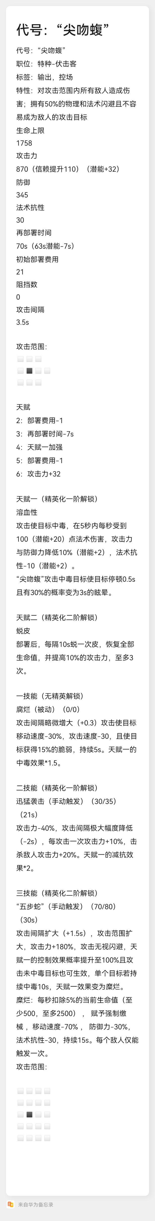 自制干员:“尖吻蝮”