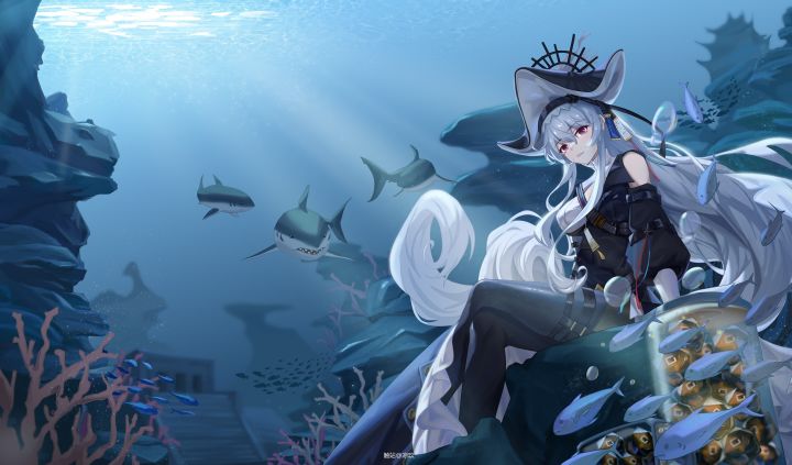 也是我入坑一个月刚到手就满潜的鲨鲨(鲨鱼画崩了别看😂)画师:凉玖(仅供壁纸、头像,参考等)