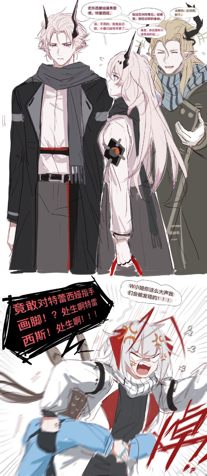 【姓名】玄/离【性别】男/女【代号】:博士【外貌】:男银灰色的头发,后面有一个小小的马尾,平常都是咪咪眼睛,瞳孔是血红色的。女银白色的头发,长发可以齐腰,但一般会将它梳理成长马尾辫,眯眯眼,瞳孔是暗金色的。衣服黑色长版风衣(男性时后背标有Citizen,女性有Contraband),女性的时候一般会把领子立起来,但男性相反。男性下半身一般会穿休闲长筒裤子,女性一般是短裤加上黑色