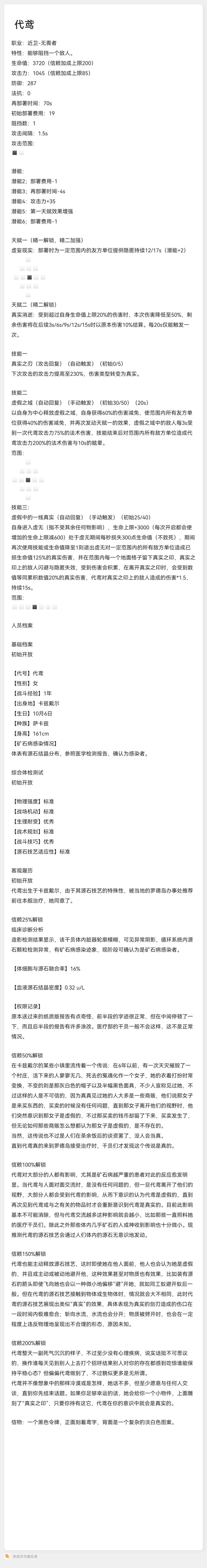 自制干员:真实之物-虚假之人 代鸢 (面板档案)