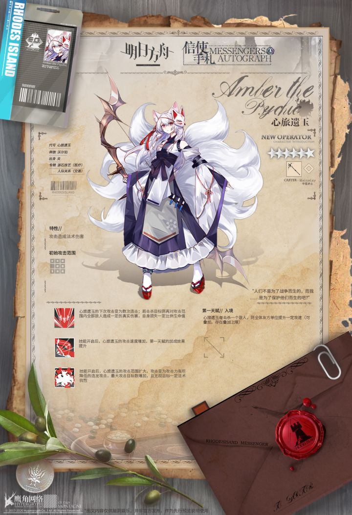 导航贴链接:https://www.taptap.com/topic/19976038——————————【活动奖励干员】//心旅遗玉感谢罗德岛的大家对我的帮助。如果不是你们,我可能也将沉眠于自己的过去。我会珍惜这份独特的礼物的,请大家…不要疏远我。(因为预算不足所以没有精二立绘了捏,非常抱歉)遗玉小姐说,那次任务化解了她的一个心结。由于参与作战任务的成员并不多,罗德岛的大部分干员并不
