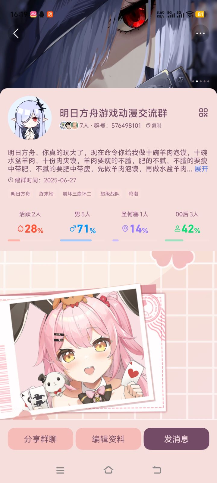 这是只是个普通的方舟闲聊群啦,虽然现在人很少但如果你现在进的话,就是这个群的元老级人物了ヾ(❀╹◡╹)ノ゙❀~ 所以如果没什么事的话,至少看一看嘛 #明日方舟