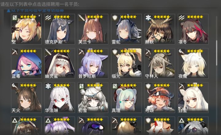 #明日方舟 如题,如图,实际上拿到这个券似乎很久了但是没选下来,还是希望它发挥一点作用的。中间因为学业原因反复退坑入坑,所以干员跨度可能有点大?麻烦大佬们帮帮忙,随便讲一下养什么角色比较好orz