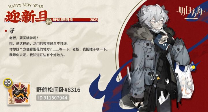 今宵与君共守岁,明朝一道把新迎感觉今年各种东西都意外的多呢像是方舟的新春会竟然有五个之多意外的来我家吃年夜饭的人多出好几个买的游戏还没玩的也存了不少之类的从头到脚的小毛病也不可避免的增加了怎么说呢,一切好像都还不错的样子总之还是多谢在座诸位一年的陪伴和捧场祝各位合成玉年年有余,祝罗德岛岁岁平安吃烫的不得口腔溃疡,吃辣的不长痔疮那就这样,各位回见