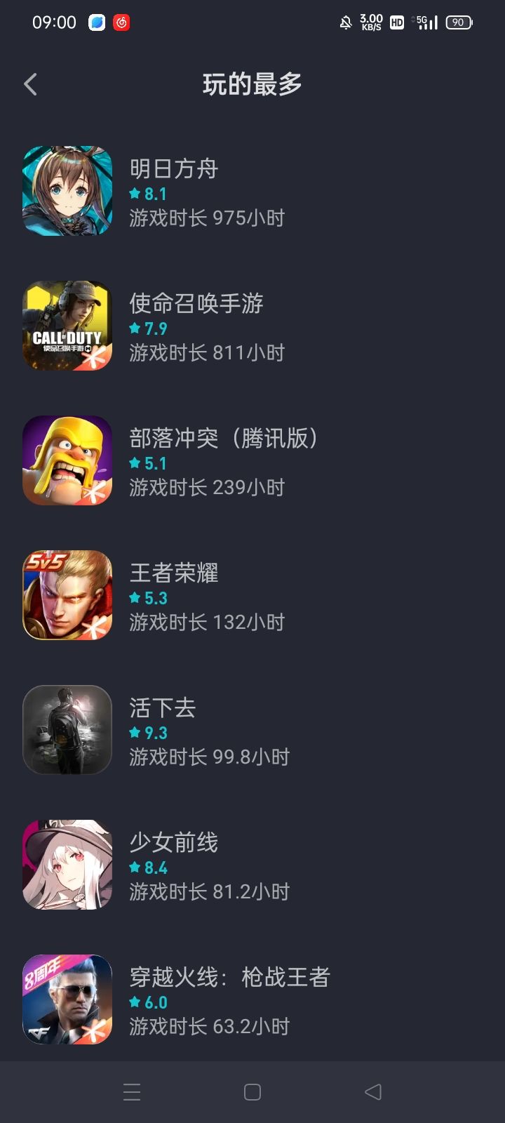 🤔方舟我是19年6月份入坑的,玩到120距今也有一年多差不多两年了,四年接近五年的全勤月卡玩家怎么会连一千小时都不到呢(没得装逼,😭了)CFM我玩了整整七年多马上就八年,我在CFM官方账号信息查到的资料是在线时长有3400多小时(很久以前截的,现在找不到了)使命召唤玩了一年多左右就已经跟接近五年的方舟同层了,不禁好奇tap的游戏时长计算是怎么样的,是因为换了手机直接清零了嘛🤔#游戏讨论#明日方舟