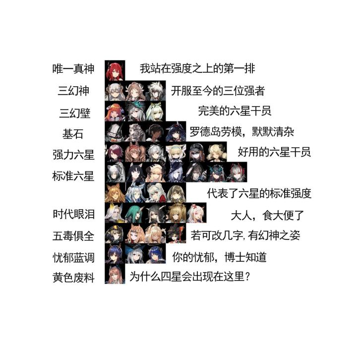 说不定里面有能登顶的呢?先锋琴柳等投锋yns3(仅反隐+束缚再借5s)近卫小姨1锏隐隐2(?)术师妮芙2小火龙(减抗)香蕉烛煌小莫狙击ew蕾缪安重装黍(传送)余(灼热)辅助酒神2(但被加再部署搞得有点尴尬)图图1铃兰特种夜刀,傀影,君君阿斯卡纶温蒂,歌蒂艾拉医疗苇草2m3勉强总得来说,目前还是挺百花齐放的。不像前几次的林,飞刻一眼望到