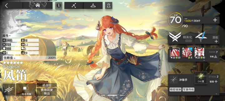 这次夏活送的六星分别是先锋的风笛虽说被伊神挤压了就业空间,但本身身板也不弱,带三技能更是先锋里的近卫,你要知道带三技能(想让她上场练)的她当年是被称为疯笛的存在,二技能(随意)开局下来清狗不错,一技能(随意)加攻击和攻速重装的塞雷娅没黍选塞,有黍也可以选塞,虽然都说黍抢了塞的就业空间但只抢了一二技能的,三技能(法蒸就练)依旧是很强的法伤拐,并且还能sp+1(有模组加二),二技能(没黍就练)