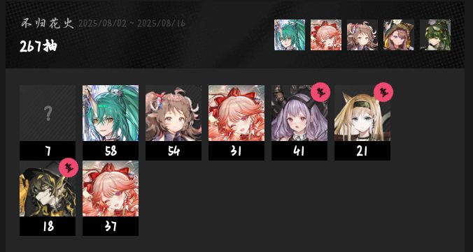 友友们,角色如上,这个池子24抽两个当期up,感觉还可以,有无懂哥帮忙配队