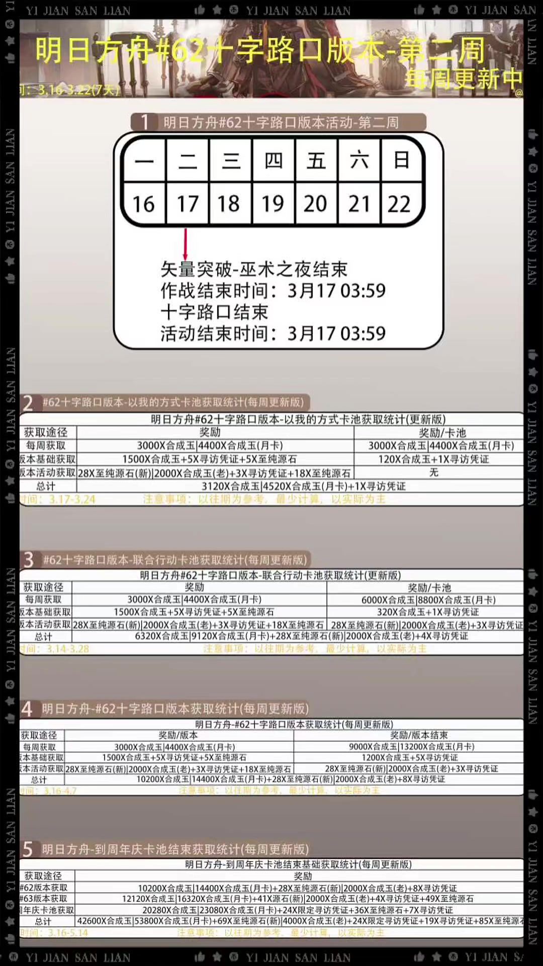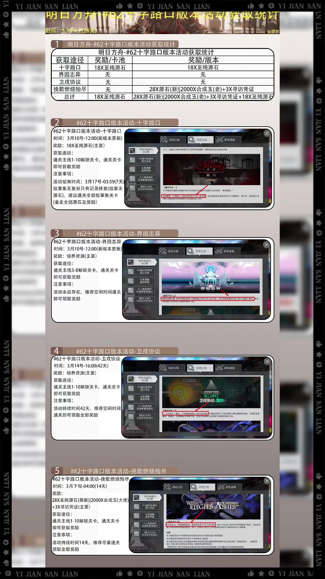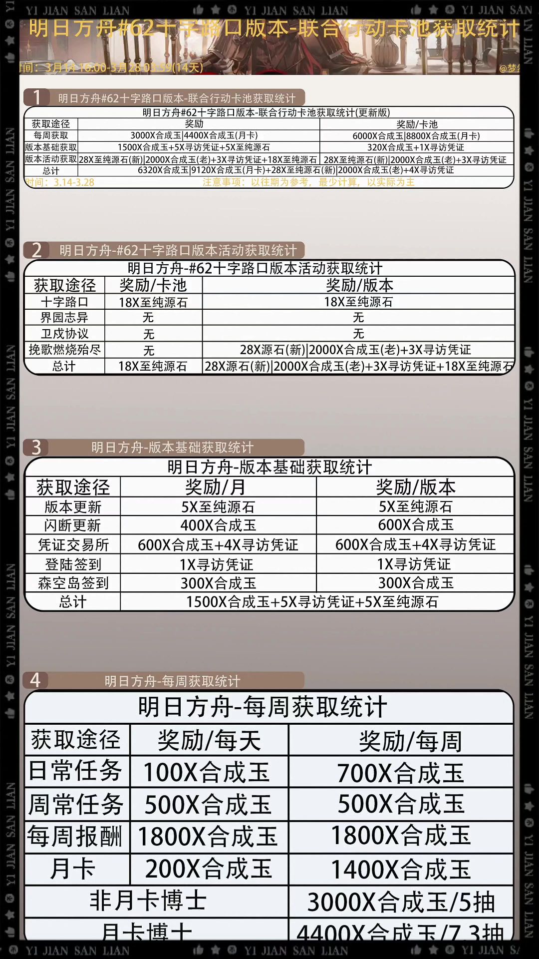 明日方舟-#62十字路口版本活动基础获取统计