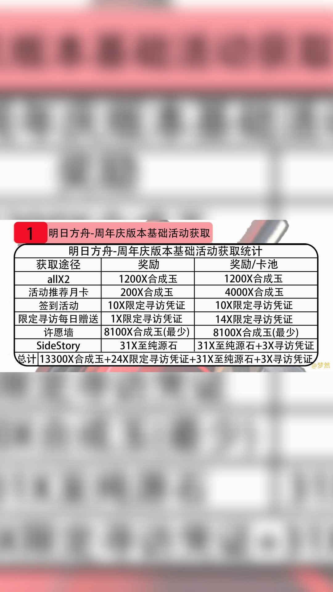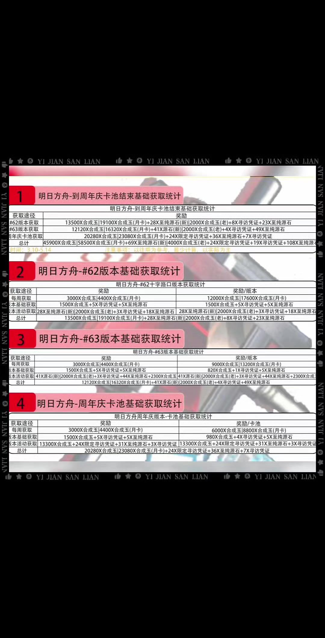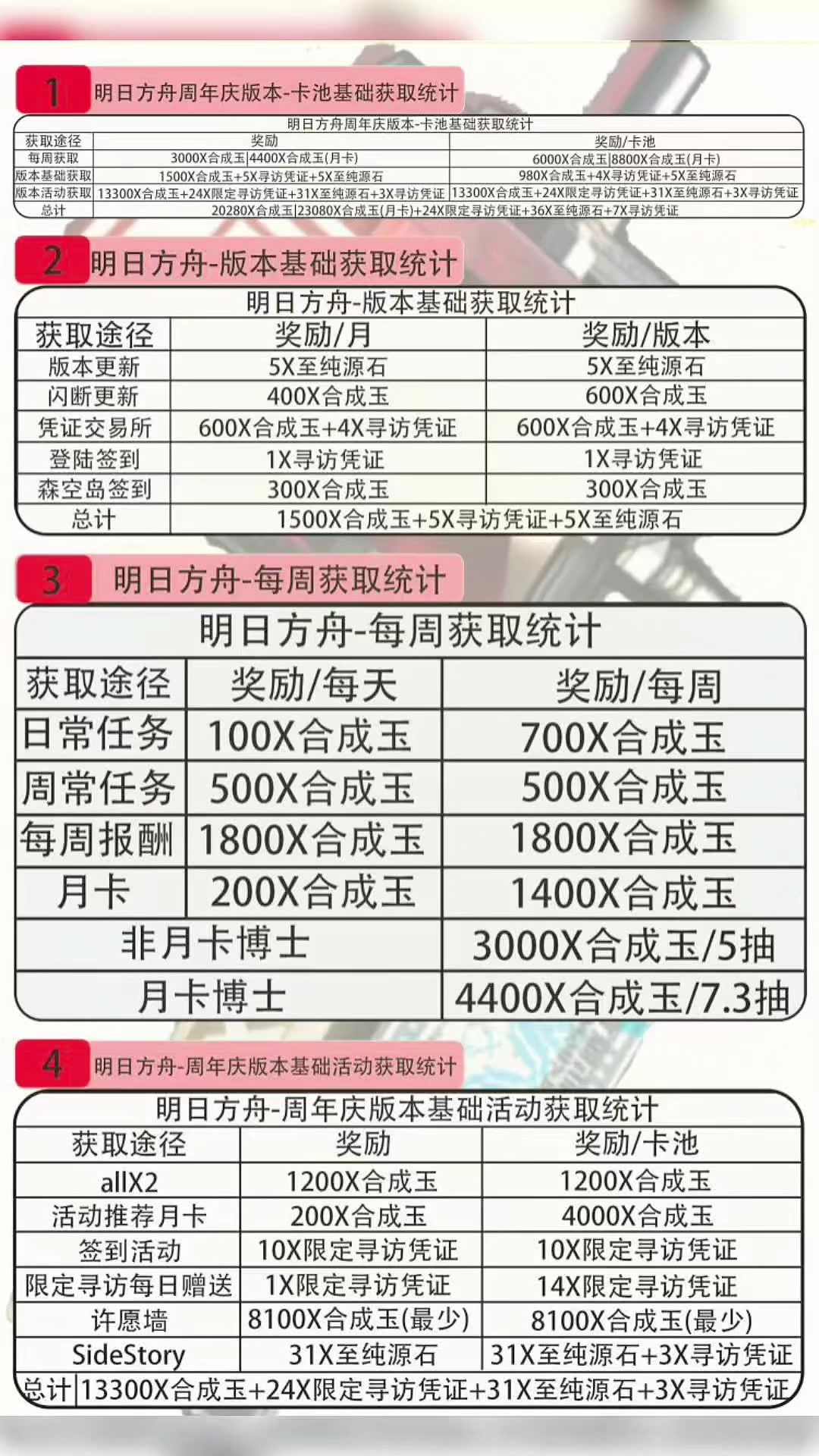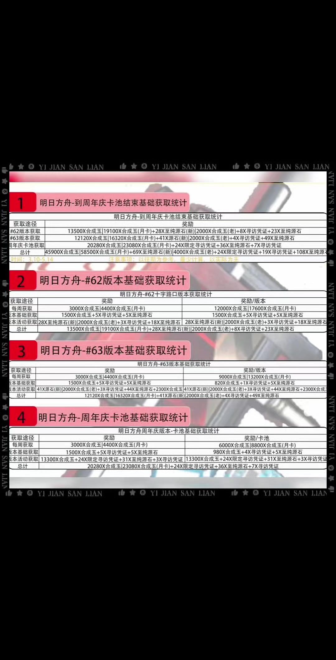 明日方舟-#周年庆版本活动基础获取统计