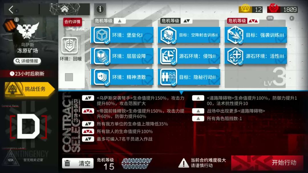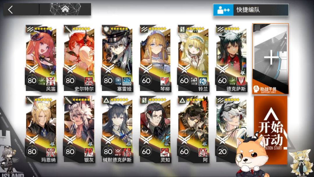 合约刚开始我就看到很多人都说这次合约简单,然后开tag的时候也是轻轻松松的,但是开完tag,准备自己摸着打18级的时候,脑抽的事情就出现了。我就和前几次危机合约一样,死揪着两个三级词条不放然后我就顶着这两buff开打,中间换了7、8次其他tag,最后在这两顶级buff下,只要我敢点一个减攻速或者减攻击tag我就寄下面是我通关时的队伍↓因为三级加攻词条,导致我开局只有德狗桃子根本没办法开这