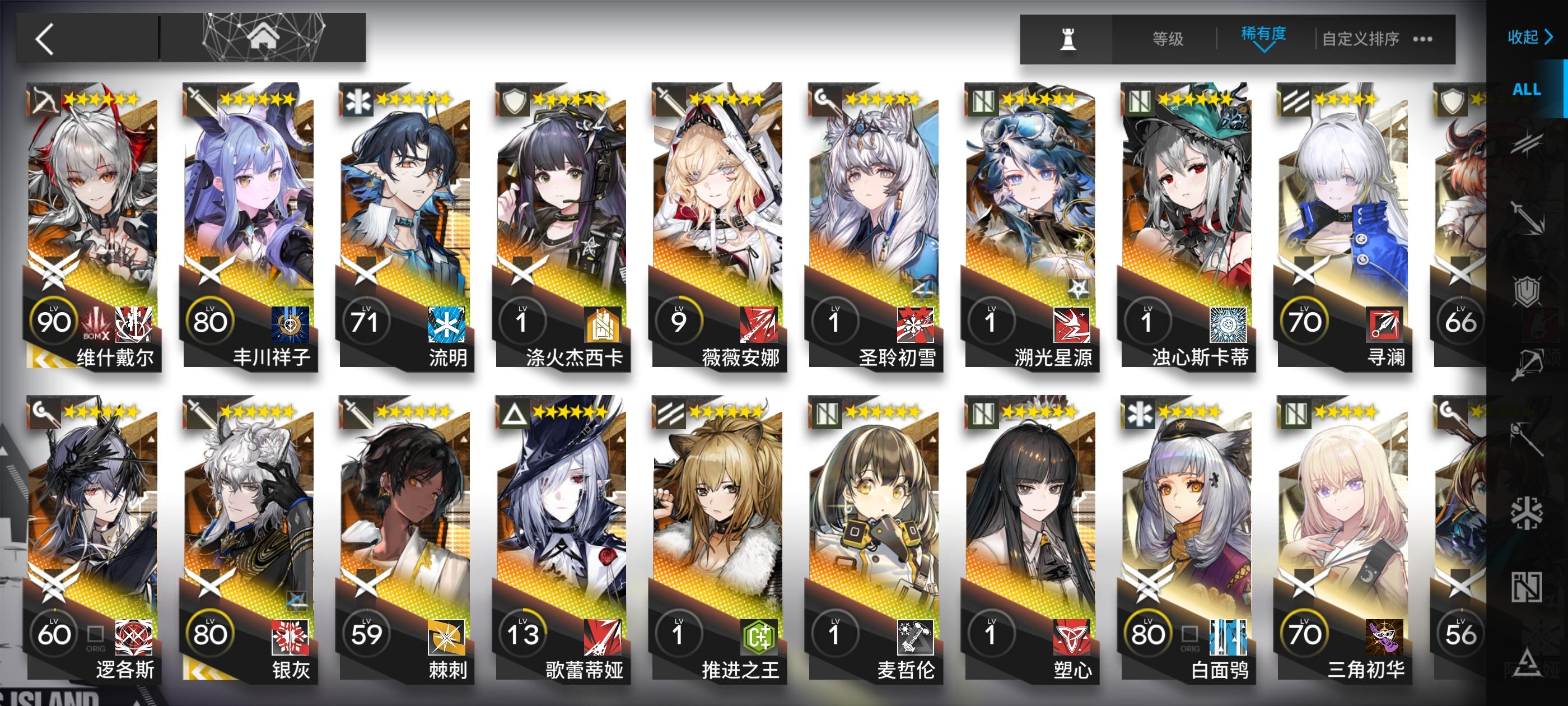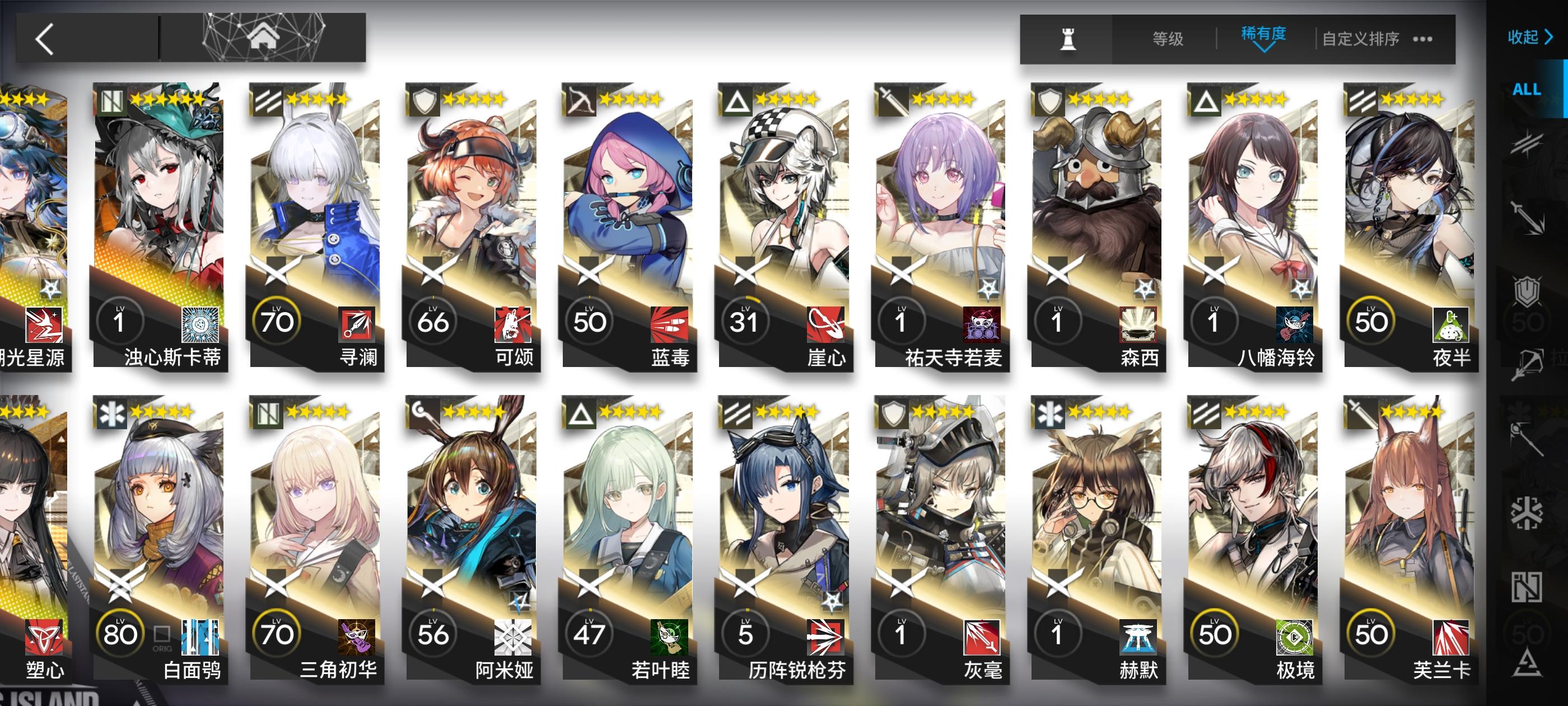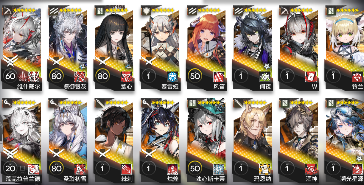 就像上一个帖子说的,因为一直没抽出e银,所以打算不继续下池子了,因为肝不出那么多抽。目前有的六星就是图里的全部了,想问一下之后如果一直不下池子,应该可以玩……吧?然后就是有什么必须要养的角色?还有什么是不用养的角色?有没有好用的四星五星推荐(^ω^)👍🏻目前大部分主线都没打,攒到周年庆够300抽井e银嘛?感谢#明日方舟 #明日方舟干员推荐