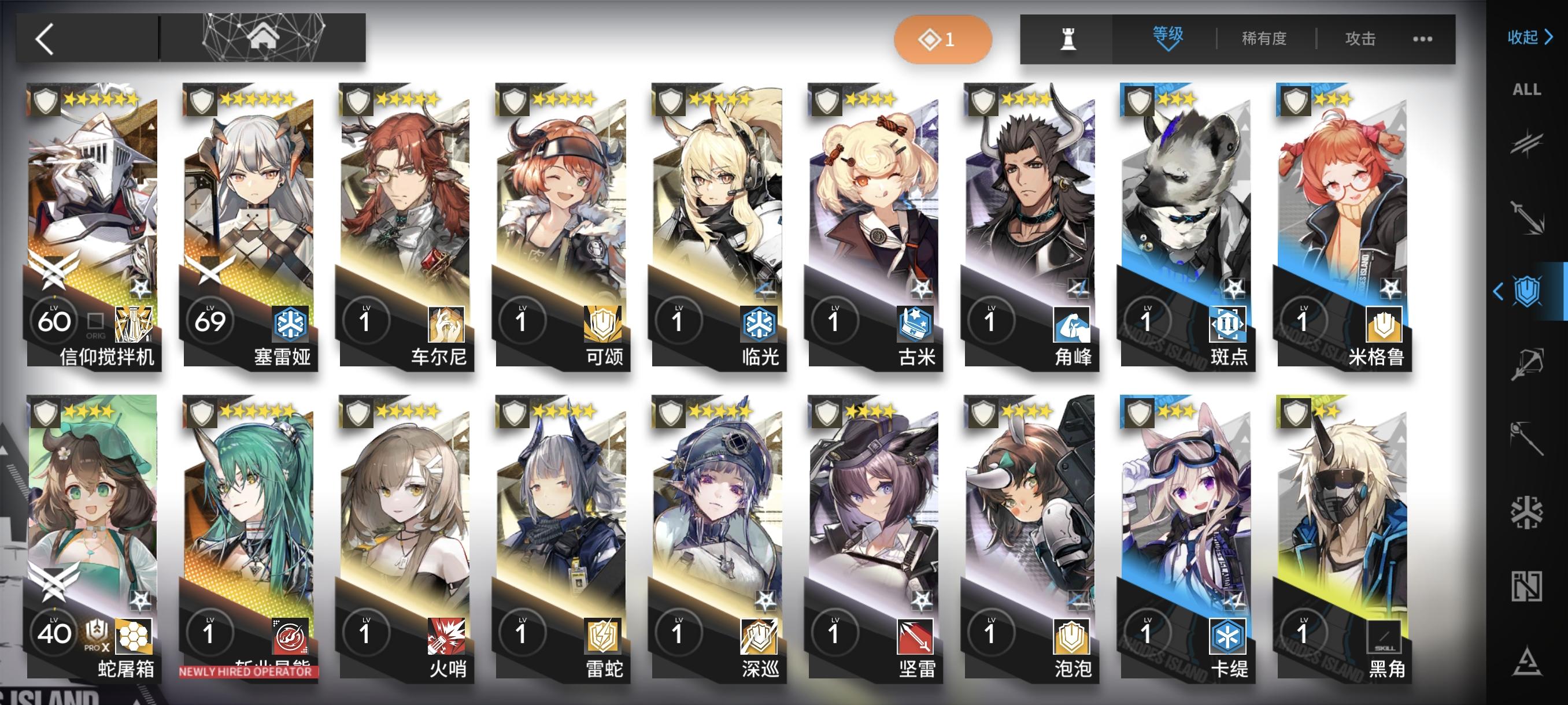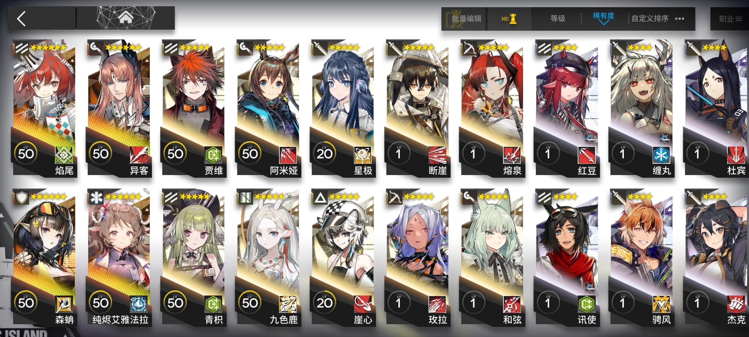 这个号是最近回坑的,总感觉有点子养废了图里是我的所有角色,有没有大佬能给一点建议,告诉我现阶段该怎么养,还有就是这次的六星自选推荐哪一位,谢谢大家了#明日方舟 #游戏日常 #明日方舟攻略 #游戏讨论