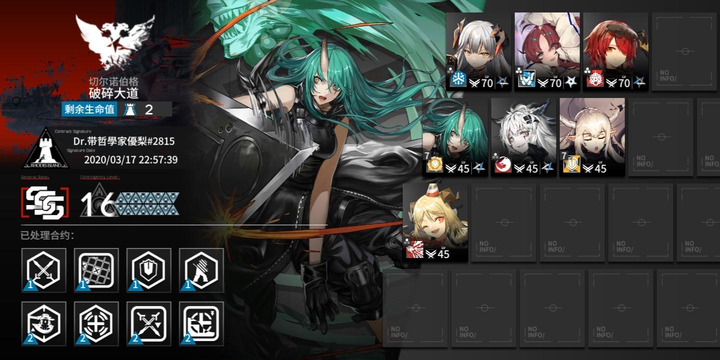 本文首发自【情报姬】未经授权不得转载作者|持心审核|某瑭排版|阿如危机合约 以已经上线几天了,大家是否都把我们的小天鹅从商店里换出来了呢?其实拿走这次危机合约的奖励并不是一件难事,大家实际上都想着的是如何在常驻图里打出高危机等级。那么本次我们将带来的便是16危机的破碎大道低配攻略。在此感谢b站up主小狼xf的思路,当然本文最后走的是不同的阵容。Tag选择干员准备攻略过程总结【