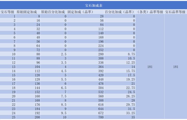 2.06版本宝石加成表