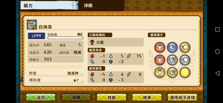 白海龙是一只比较好用的随从,我呢准备了几种配法,希望你们能喜欢😊 白海龙自学2个技能,雷双牙和带电身体攻击。基因呢也是围绕这两个技能来配的。第一种速力白海(竖着)攻击大,攻刚大,效痹大/效异大,速攻大,一角龙,麒麟,雷麟,追击,速攻雷。因为白海自带雷光中,所以就不配雷光大了。这套配法兼顾了速度和力量,没有到极限,但也不会弱到哪儿去。打谁都好使。剩下几种我配好再发,图文并茂。