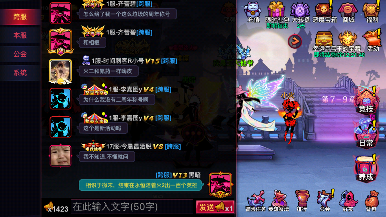 风里来,雨里去,一次一次的进进出出副本,一次次打怪升级,火柴人联盟2总能带给我惊喜,每一次瓶颈的突破,每一次新英雄的获取,每一次领到小火发的福利,心情就格外的好。在520来临之际,祝火二的各位开开心心游戏,健健康康成长 应用宝 137服 封苓七